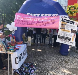 Referente ao combate de mortalidade materna e violências, a exposição foi realizada com uma programação voltada à saúde e os cuidados da mulher, que teve como programação testes rápido de Hepatite A e B, HIV e Sífilis, vacinação, aferição de pressão, testes de glicemia e também orientações sobre o tratamento para Tabagismo, tratamento da Hanseníase, Tuberculose e orientações sobre o pré-natal, Parto e Puerpério.