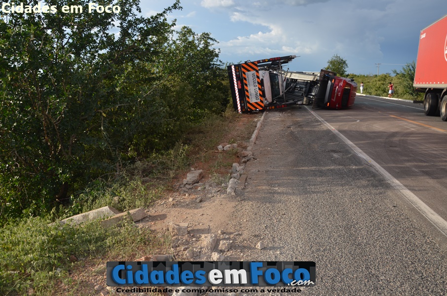 Carreta cegonha carregada tomba / Foto: Cidadesemfoco