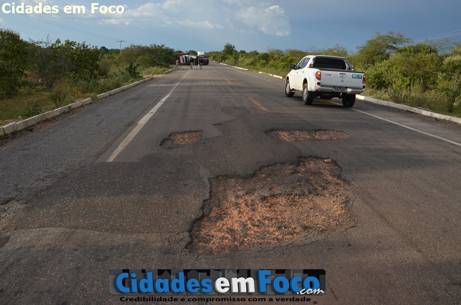 Segundo a PRF, o acidente ocorreu após o condutor passar por uns buracos que tem na BR 407 e perder o controle do veículo, fazendo com que o mesmo tombasse e interdisse a rodovia federal.