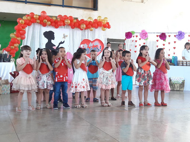 Os pequeno alunos da escolinha Zezé Leal fizeram uma apresentação para homenagear as mães pela passagem do seu dia.
