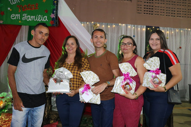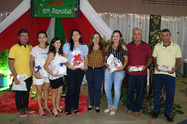Segundo informou a prefeita Maria José, essa Confraternização Natalina ela tem também o objetivo de homenagear os colaboradores da Administração Municipal pelo ano de trabalho que passou, pois durante todo o ano eles se dedicaram para desempenhar um bom trabalho em suas funções, então nada mais justo que agora retribuir um pouco dessa gratidão, disse ela.