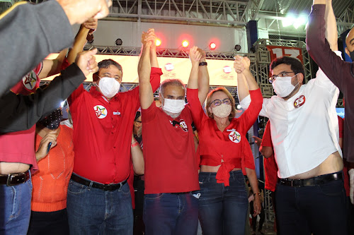 Com a presença do Governador Wellington Dias (PT), dos deputados estaduais Pablo Santos (MDB), Severo Eulálio (MDB), Coronel Carlos Augusto (PL), do Secretário Estadual de Fazenda do Piauí, Rafael Fonteles, do Secretário Estadual de Governo, Osmar Júnior, vereadores, empresários, médicos, simpatizantes e militante, os partidos PT, MDB, PCdoB, PV e PL realizaram na noite deste sábado (12), na Quadra Esportiva do Escola Santa Rita em Picos, suas convenções e homologaram o nome de Francisco da Costa Araújo Filho (Araujinho – PT) como candidato a prefeito de Picos, tendo como vice – médico Neurologista Dr. Gutenberg Rocha.