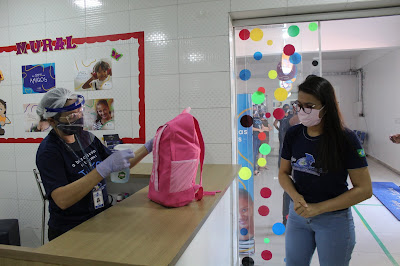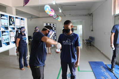 Para o diretor geral, Daniel Bonfim, essa primeira etapa consiste na preparação para aos poucos poder receber todos os alunos conforme o COE for liberando, então a escola já pensando nesse novo normal que será daqui para frente, já preparou toda a escola para quando esses alunos retornarem seguir o mesmo cronograma, falou ele.