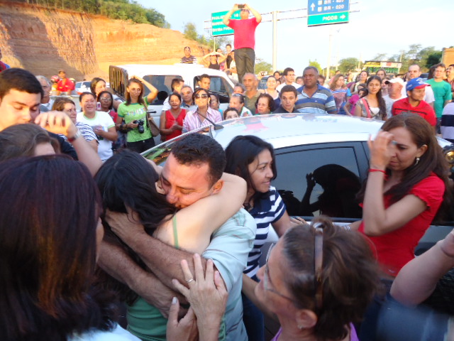 Cercado por centenas de pessoas, Joel quase não caminhava, pois todos eles queriam abraçar o amigo que foi preso injustamente pela polícia civil na operação Segor realizada na cidade no dia 09 deste.