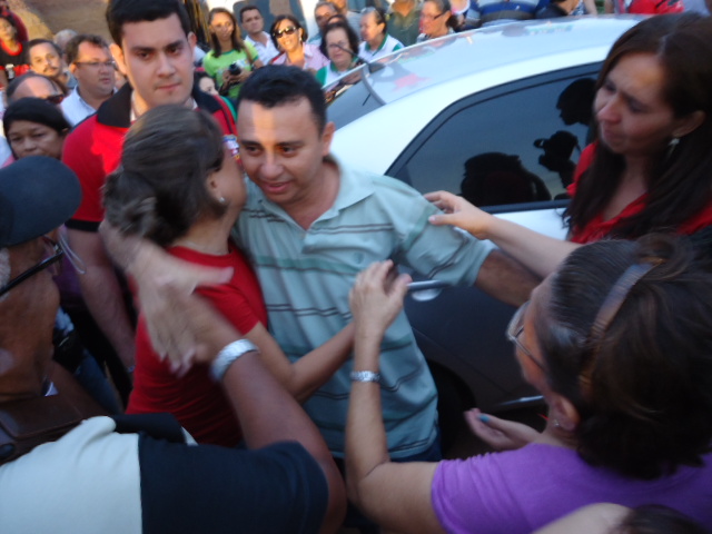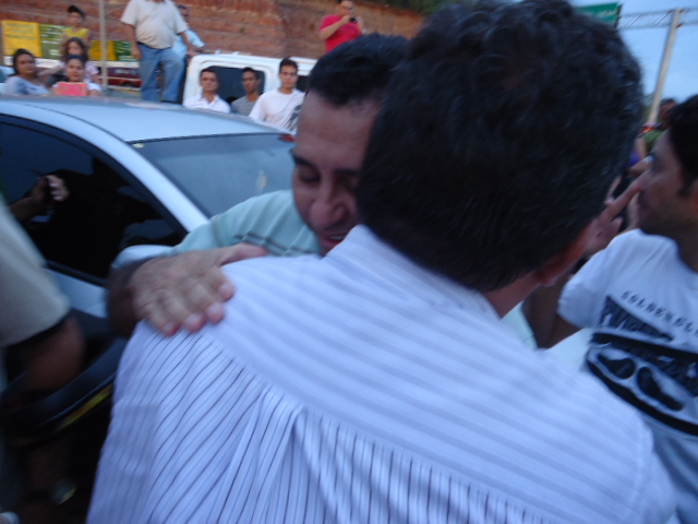 Cercado por centenas de pessoas, Joel quase não caminhava, pois todos eles queriam abraçar o amigo que foi preso injustamente pela polícia civil na operação Segor realizada na cidade no dia 09 deste.
