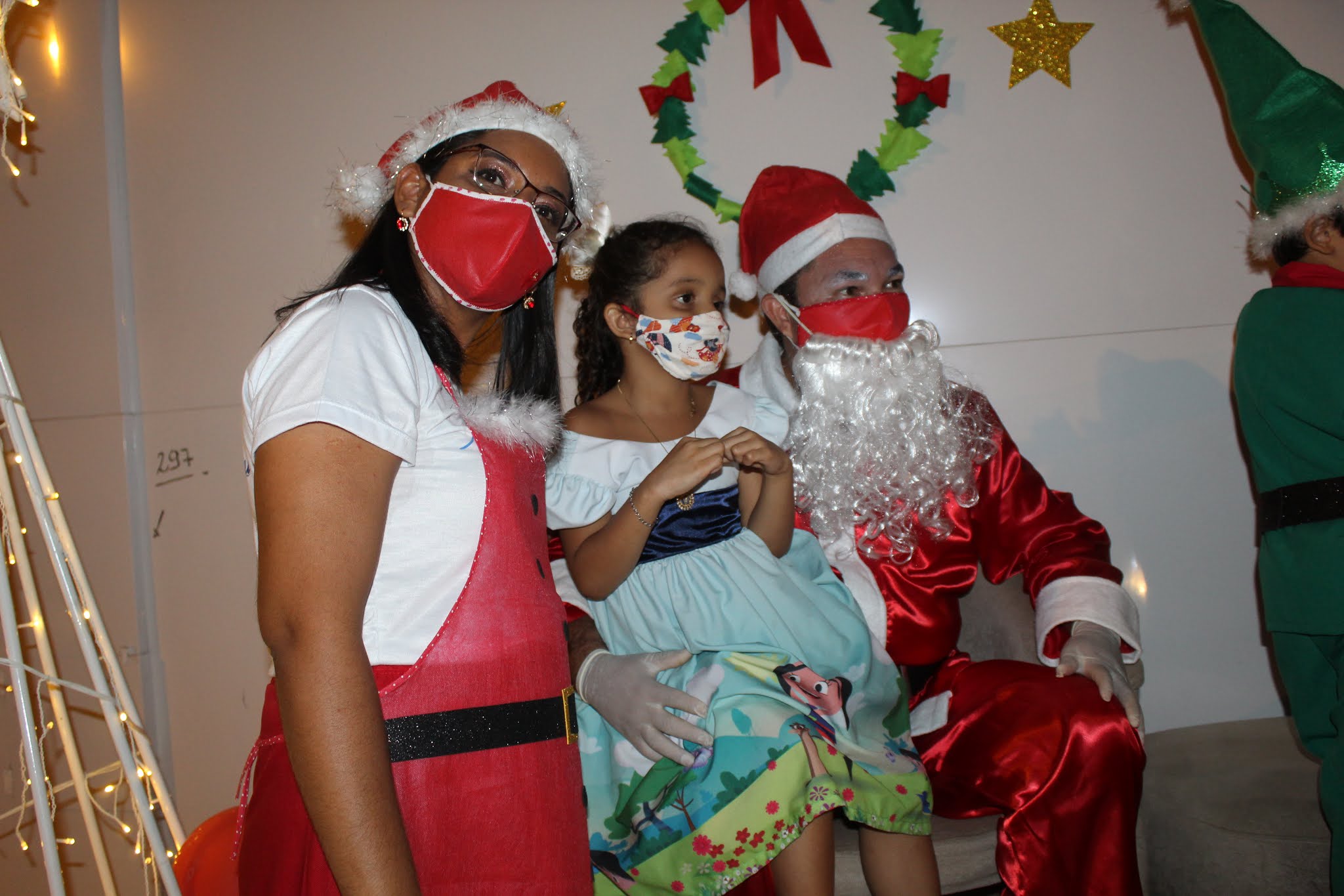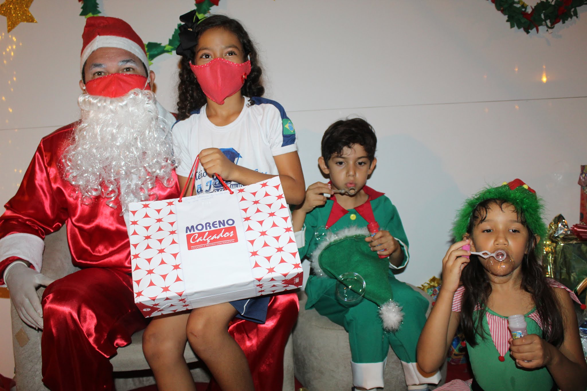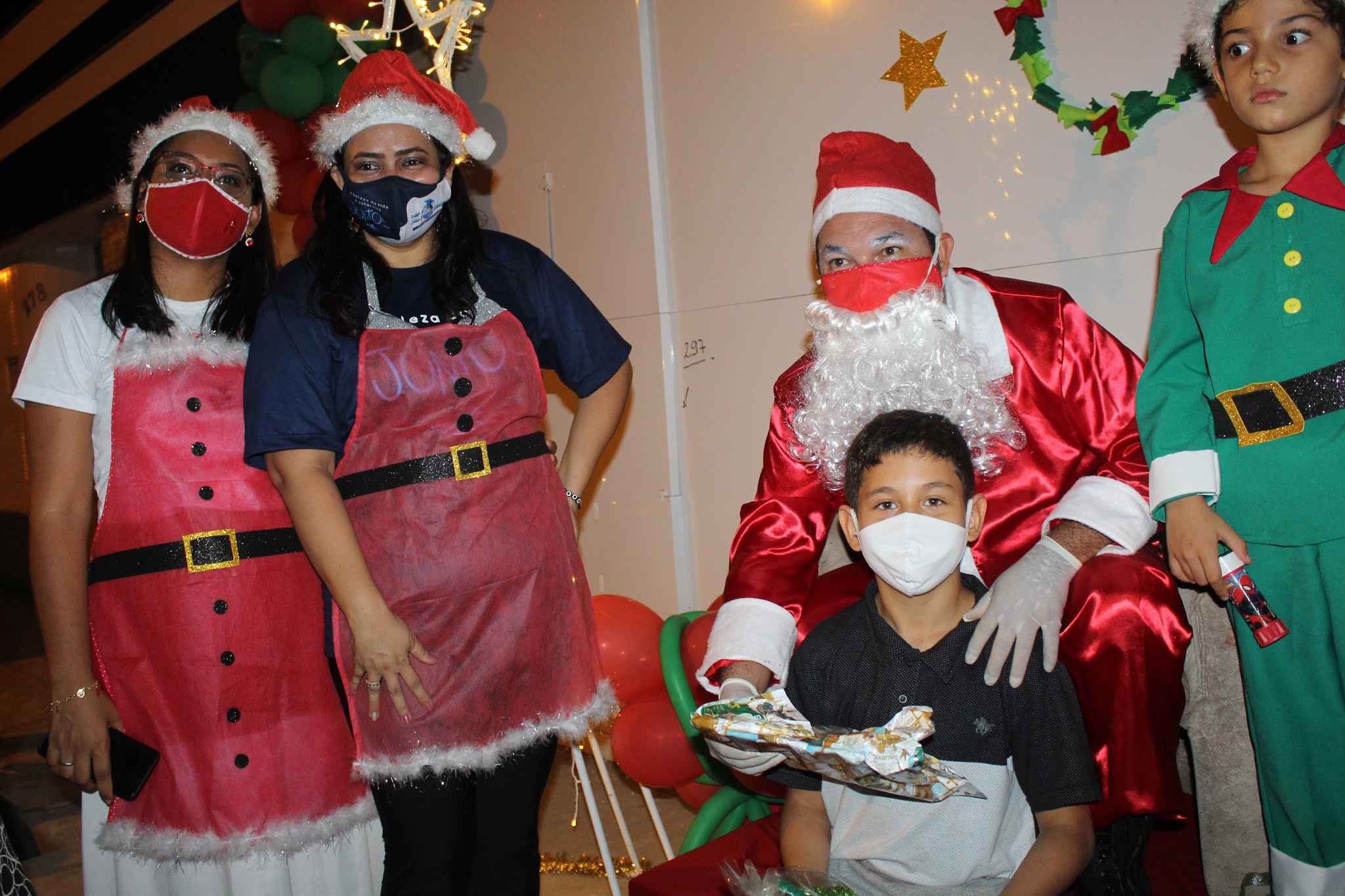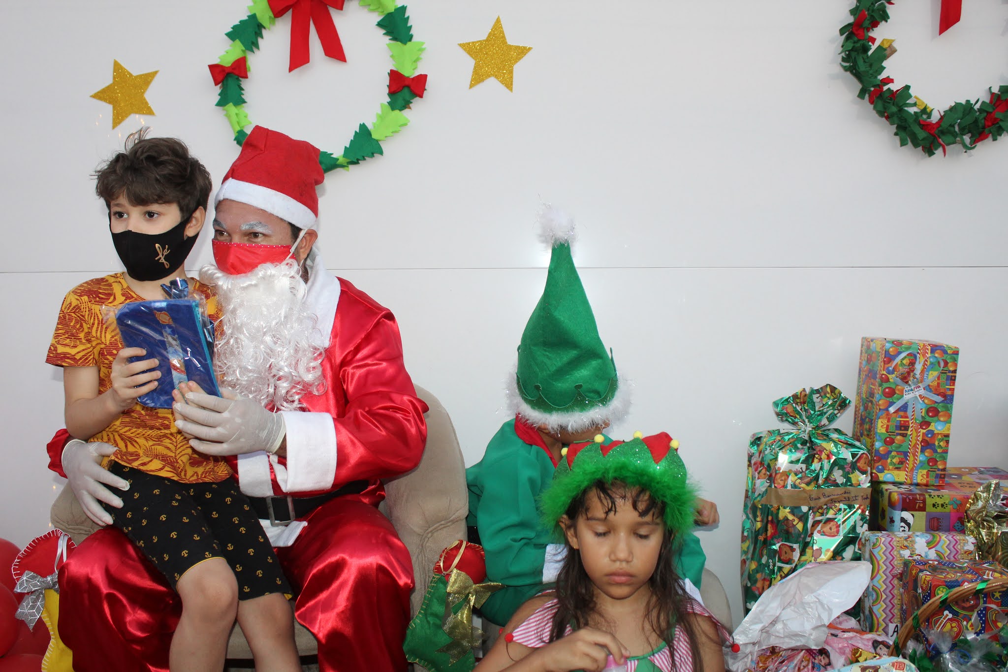 Os pais levaram os alunos até a escola de carro e moto, eles deram uma paradinha rápida na porta do colégio, aproveitaram para tirar umas fotos e teve até lembrancinha dos professores, e entrega de presentes pelo Papai Noel para os alunos com o apoio e participação das famílias.