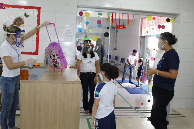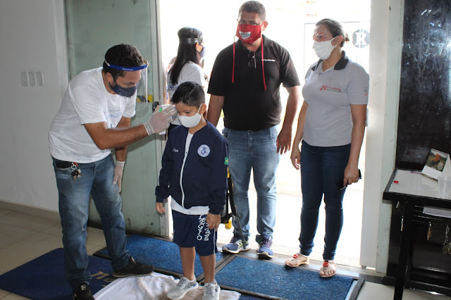Amanhã quinta-feira (04) será o início do ano letivo para os alunos do Ensino Fundamental I, Fundamental II e Ensino Médio. E segundo Ozira, a escola tomará os mesmos cuidados, pois todos os ambientes serão sanitizados três vezes ao dia, pois a escola adquiriu a máquina de sanitização e está mantendo sempre cuidados mais do que o exigido pelo protocolo, além do mais, existem pias que foram espalhadas por todo colégio, os dispenser de álcool em gel, tapetes sanitizantes na entrada e verificador de temperatura, além da obrigatoriedade da troca de mascaras a cada duas horas e meia, frisou ela.