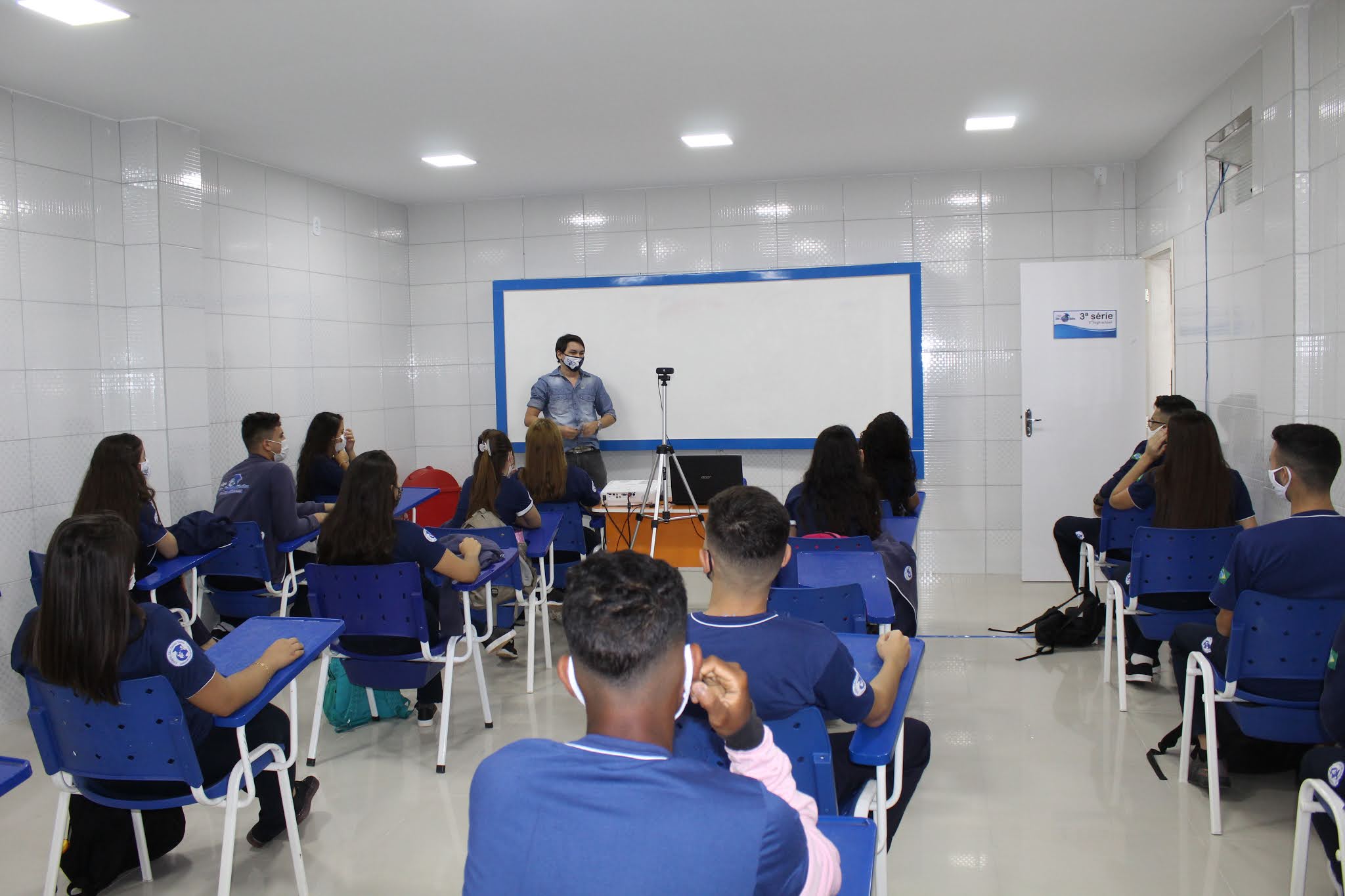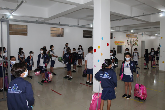 O diretor geral Daniel Bonfim, falou ainda que a partir desta quinta-feira (04), existem duas entradas para a escola, os alunos do Ensino Infantil e Ensino Fundamental usarão a entrada principal bem na frente, e os alunos a partir do Ensino Fundamental II e o Ensino Médio utilizarão a entrada lateral a esquerda do portão de acesso central da escola. “Essa é uma forma dos alunos manterem o distanciamento por medida de segurança, pois só assim trabalharemos mais tranquilos”, comentou o diretor.