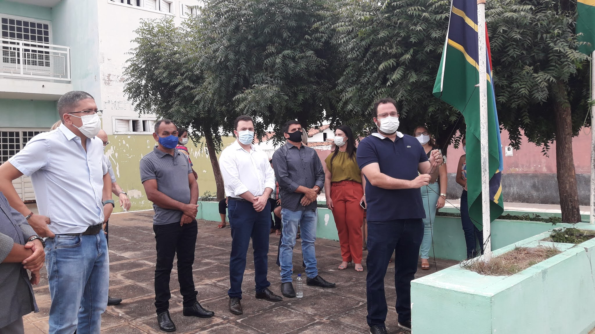 Durante o momento cívico o prefeito Dr. Erivelto Barros (progressistas), fez o hasteamento da bandeira do município / Foto: AgoraED