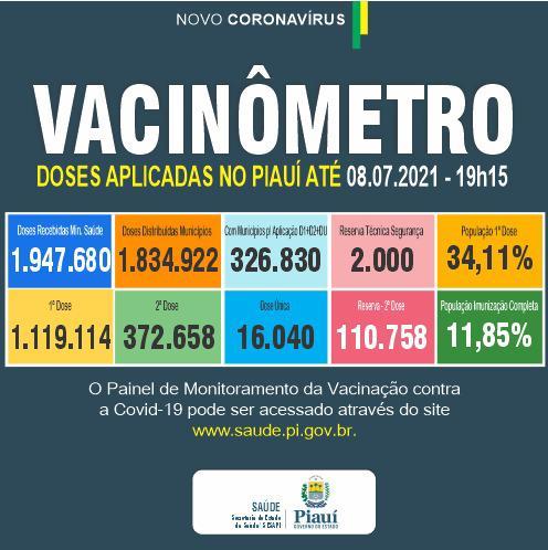 Os casos confirmados no estado somam 301.198 distribuídos em todos os municípios piauienses. Já os óbitos pelo novo coronavírus chegam a 6.684 e foram registrados em 222 municípios.