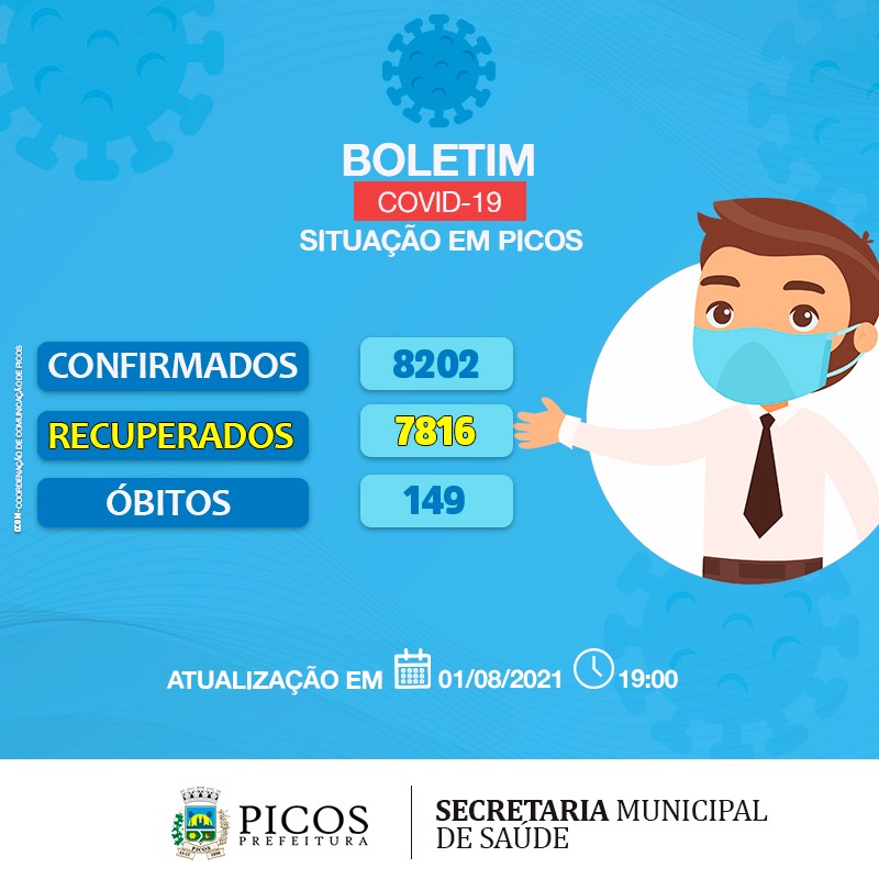 Em Picos, 8.202 pessoas já contraíram o vírus da Covid. Destas, 7.816 já se recuperaram. Há no município 237 picoenses infectados com o vírus.