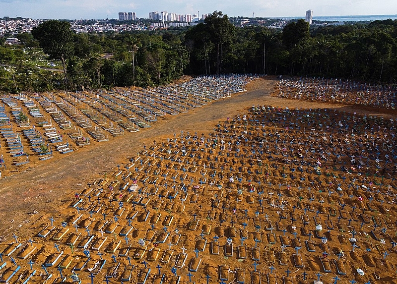 Mesmo com o avanço da vacinação e queda de casos da covid-19 no último mês, o Brasil registra uma média de 72 vidas perdidas por hora ou um pouco mais de uma por minuto (1,2). É o maior patamar de mortes de todo o mundo, à frente de Estados Unidos e Índia, as outras duas nações com mais óbitos pelo coronavírus.