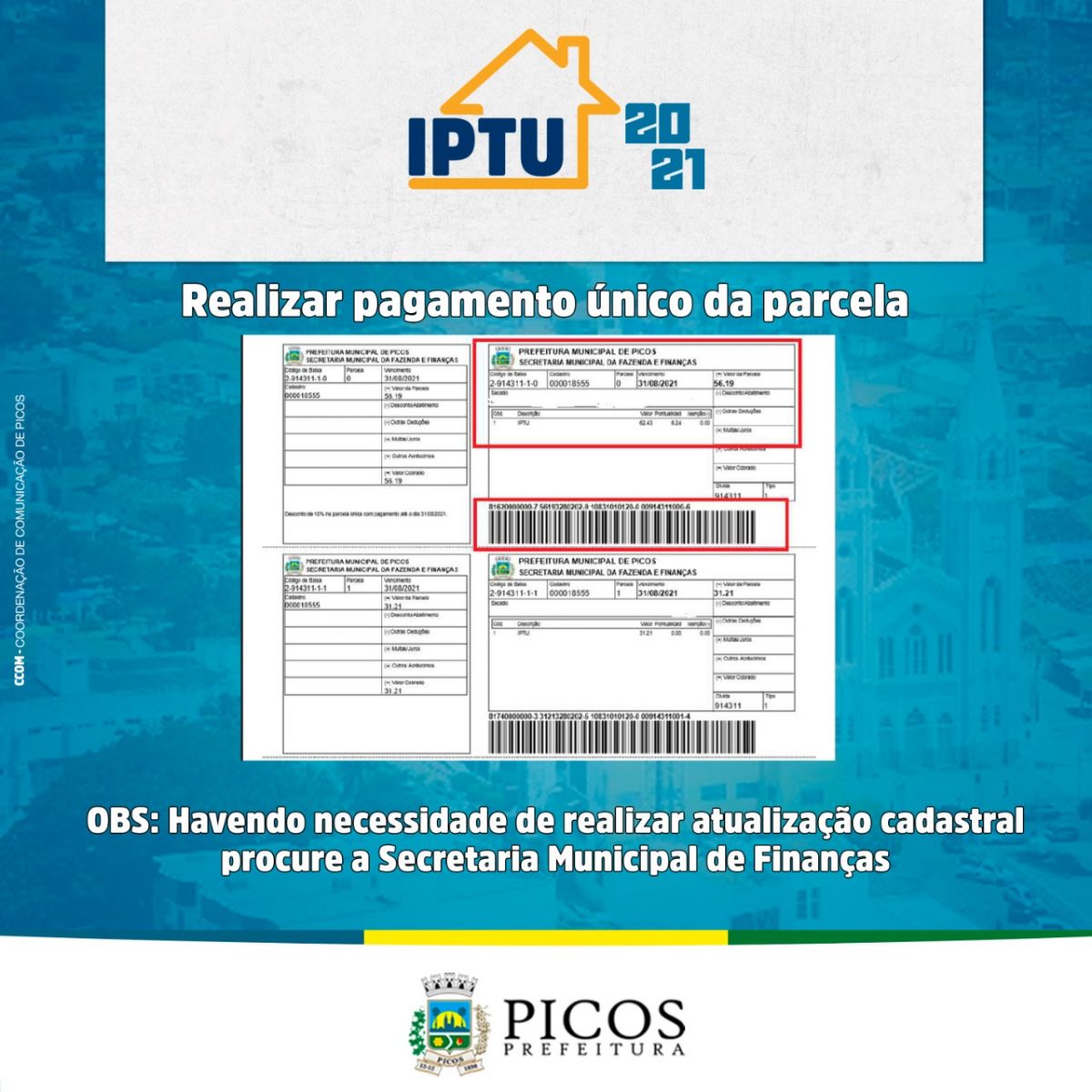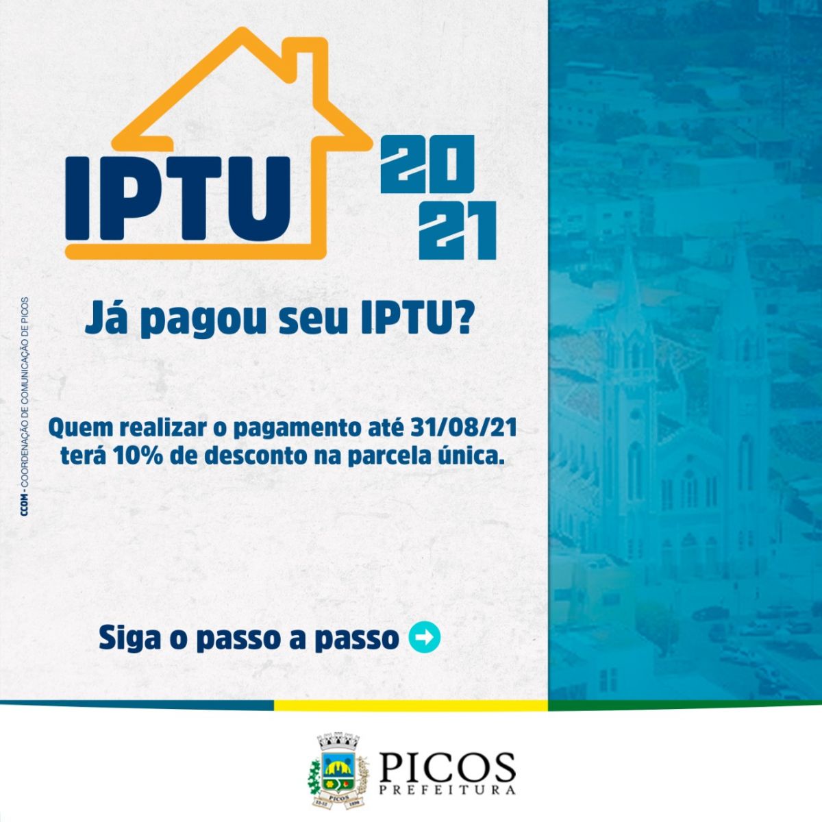 A Prefeitura Municipal de Picos, através da Secretaria Municipal de Finanças informa a população do município, que os pagamentos do Imposto Predial e Territorial Urbano (IPTU) que forem realizados até o dia 31 de agosto terão 10% de desconto na parcela única.