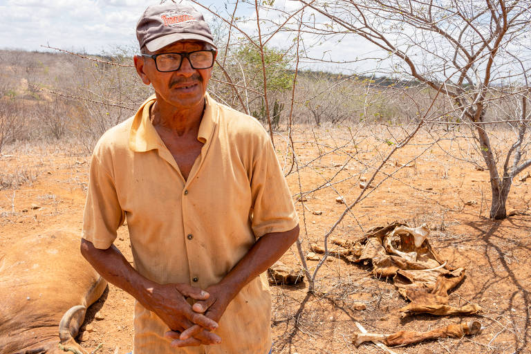 Francisco Horácio, 60, lamenta ainda a perda de seus animais. "Peço a Deus que melhore porque, se não melhorar, ninguém resiste", diz ele, se referindo à esperança de chuva, em meio à vegetação seca, onde 3 das 11 cabeças de gado que perdeu estão estendidas.