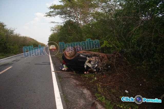 O acidente se tratava de uma colisão frontal entre um carro de passeio e um caminhão, sendo que após a colisão o carro de passeio saiu da pista e capotou / (Fotos: Click Parnaiba)