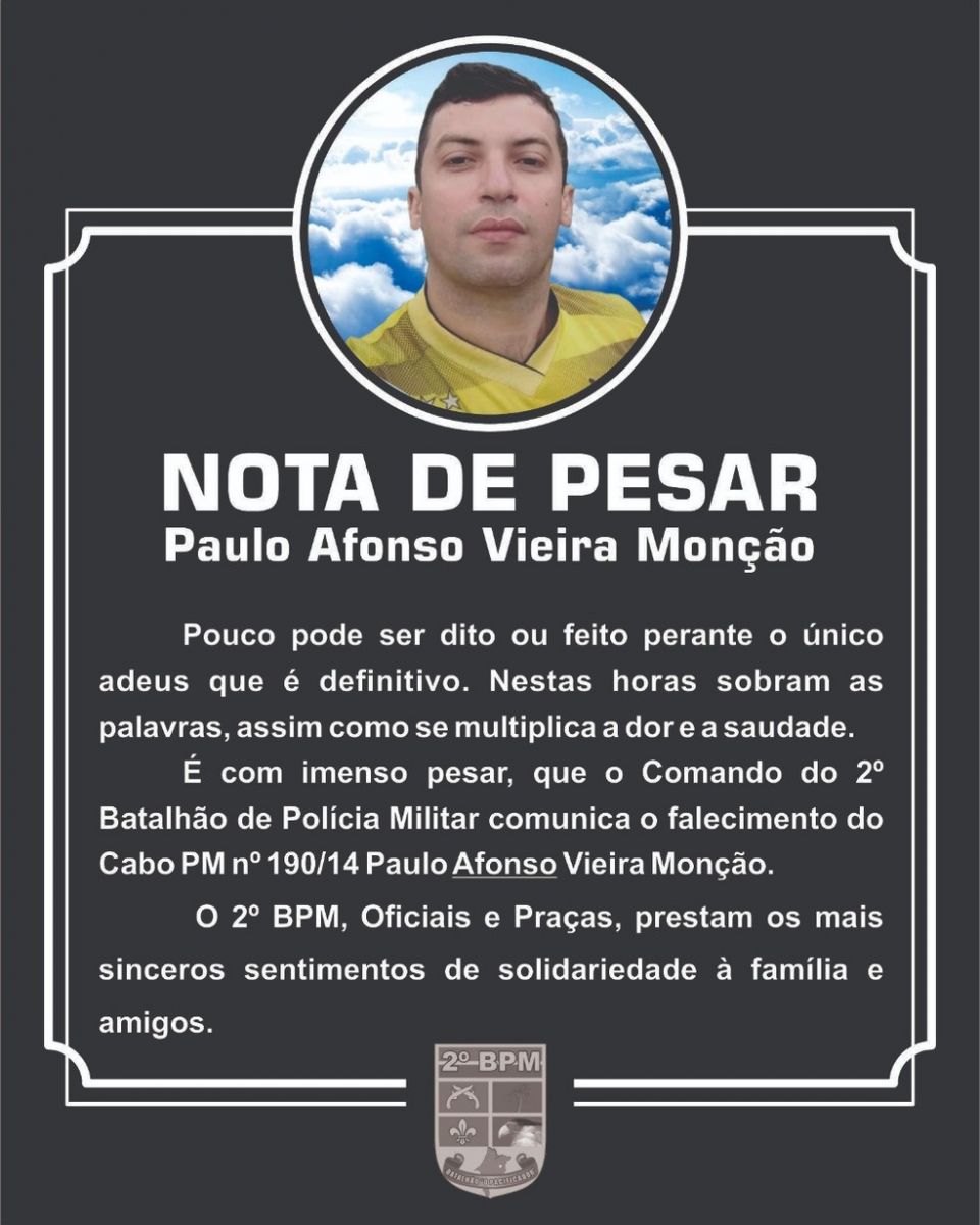 O 2º Batalhão da Polícia Militar do Maranhão divulgou uma nota de pesar pela morte de Paulo Afonso. Veja abaixo: