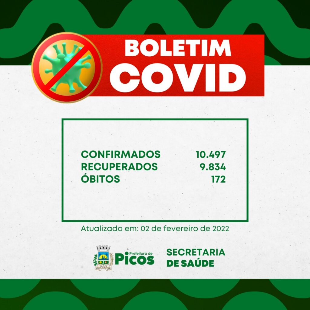 A Secretaria Municipal de Saúde de Picos divulgou na noite desta quarta-feira, 2 de fevereiro, novo boletim epidemiológico informando que o município tem 491 casos ativos da Covid-19.
