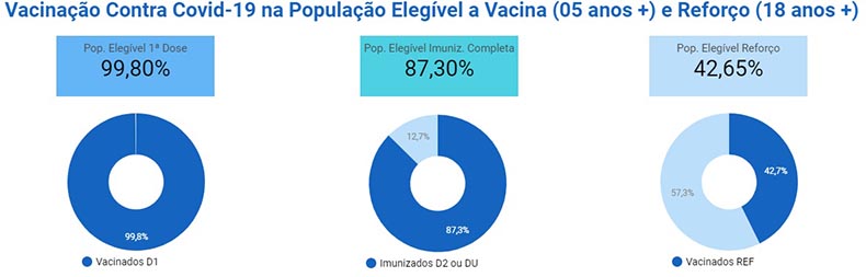 Já sobre a dose de reforço, apenas 42,7% da população a partir de 18 anos, autorizadas para essa etapa da vacinação, compareceu novamente aos postos.