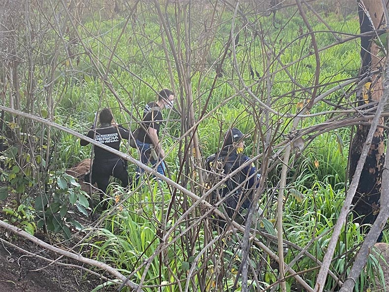 “Recebemos uma informação do copom, não precisa, da localização do corpo, que possivelmente estaria nesse matagal. Durante uma intensa procura avistamos vários urubus e com isso encontramos o corpo nesse local”, informou o cabo C. Almeida, do 17BPM.