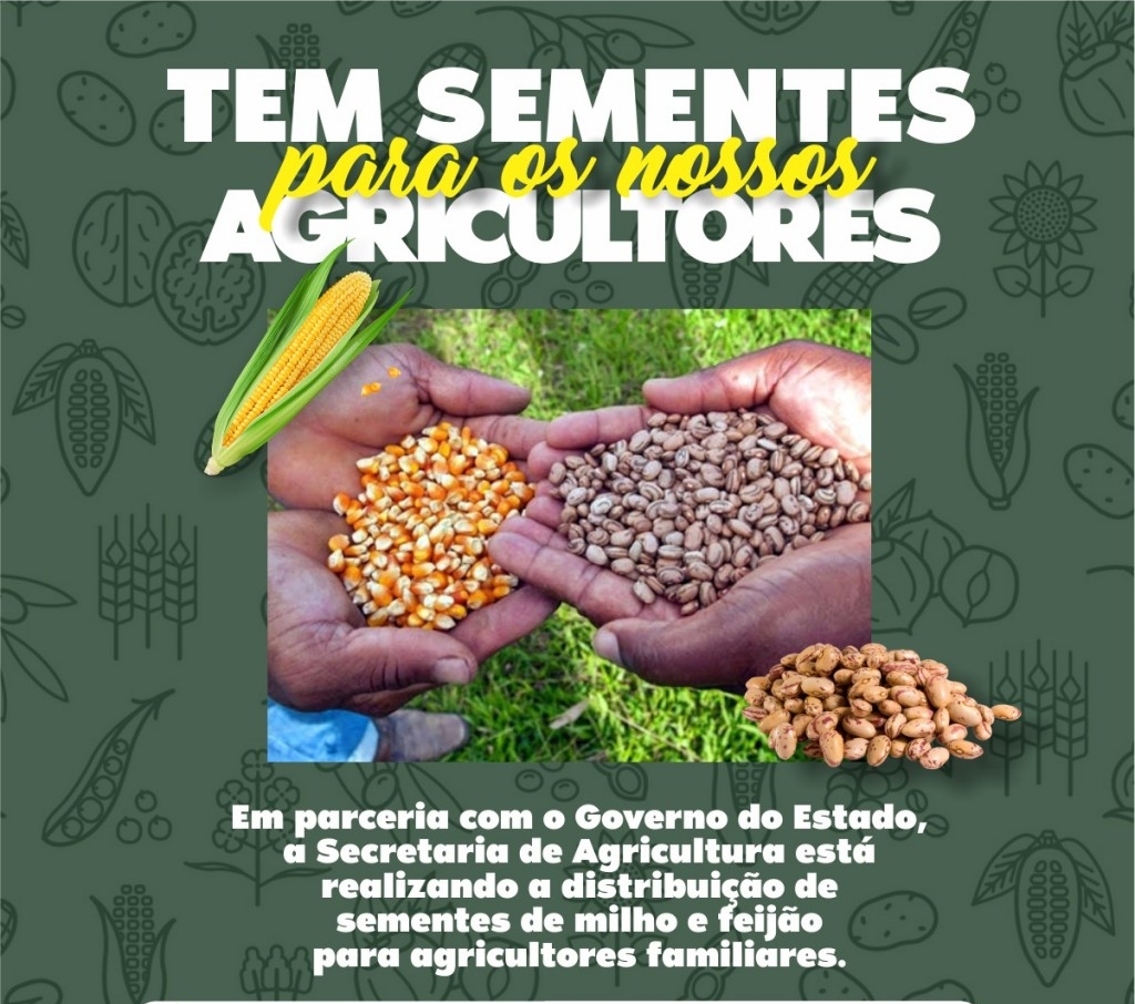 Com apoio do Governo do Estado, através da Secretaria da Agricultura Familiar, estão sendo distribuídas cerca de 6.400 kg de sementes de milho e feijão metade de milho metade de feijão e 20.000 raquetes de palma forrageira.