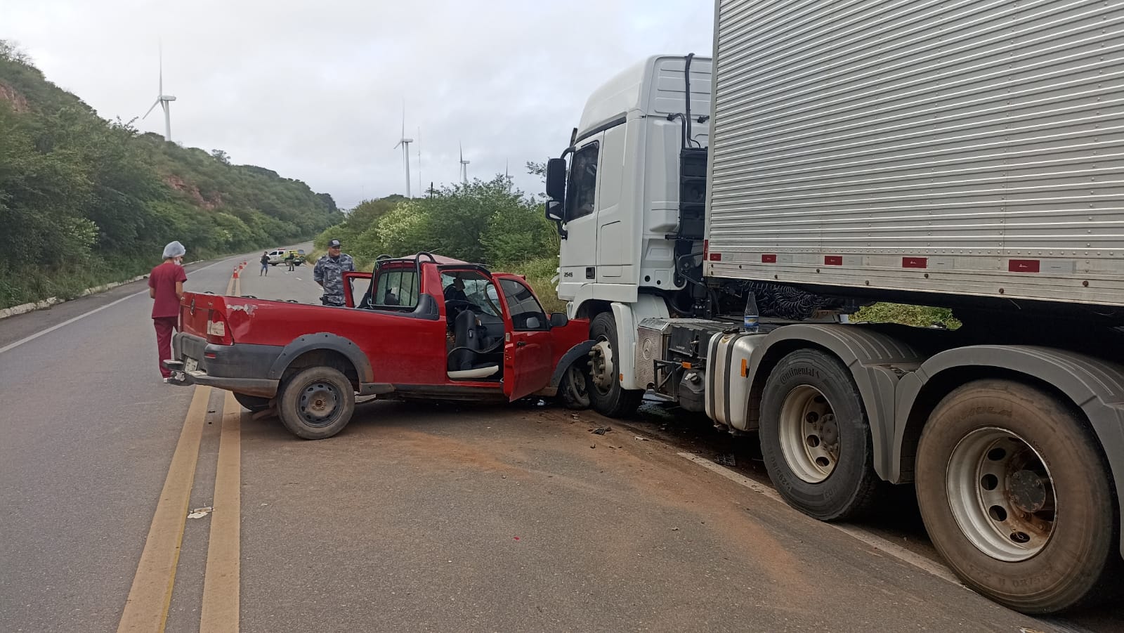 Segundo relatório da PM, a vítima fatal conduzia um veículo modelo picape Fiat Strada, que colidiu frontalmente com uma carreta Mercedez Bens no local conhecido como ladeira do ‘S’, situado entre as cidades de Marcolândia e Francisco Macedo.