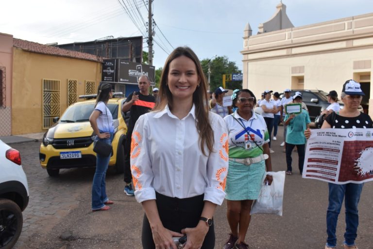 A secretária de Saúde, Tatiane Gil, participou da caminhada, e na oportunidade falou da importância do tratamento humanizado para as pessoas que sofrem com problemas mentais.