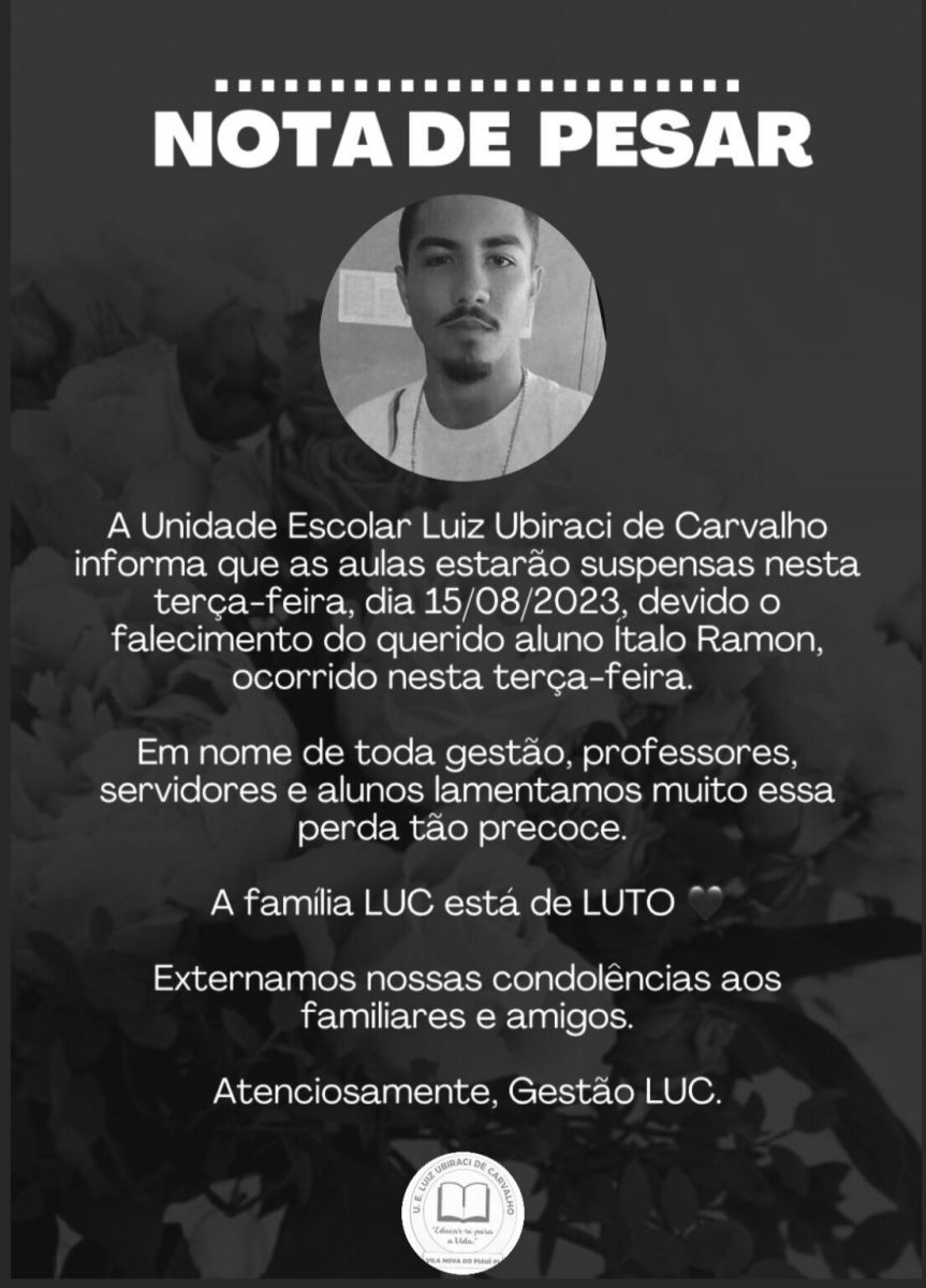 Ítalo Ramon era aluno da Escola Estadual Luiz Ubiraci de Carvalho, situada na vizinha cidade de Vila Nova do Piauí.