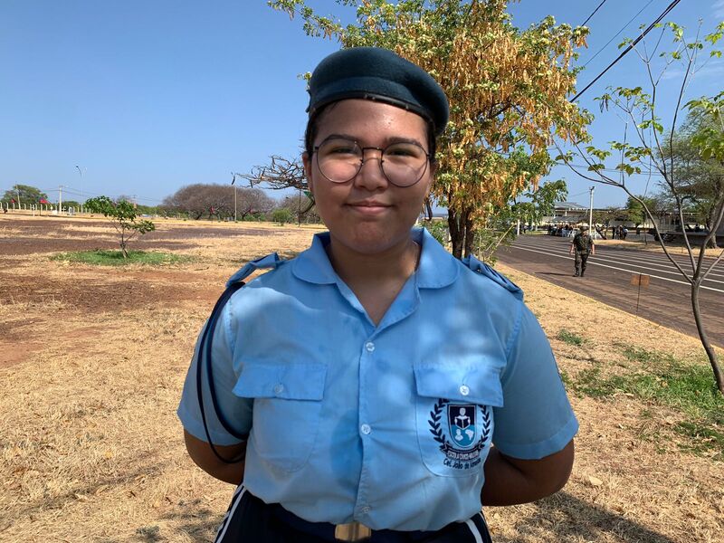 A aluna Maria Rita, do oitavo ano da Escola Cívico-Militar, Cel. João de Almeida, expressou a alegria em participar da solenidade. “É uma grande honra fazer parte desse evento. É um grande privilégio para a nossa escola estar marchando aqui”, externou.