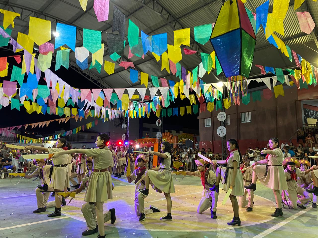 Em meio a muita alegria e diversão, centenas de crianças e adolescentes comemoraram às festividades juninas apresentando muitas atividades culturais como: danças, quadrilhas, arraiás, fantasias, paródias e comidas típicas.