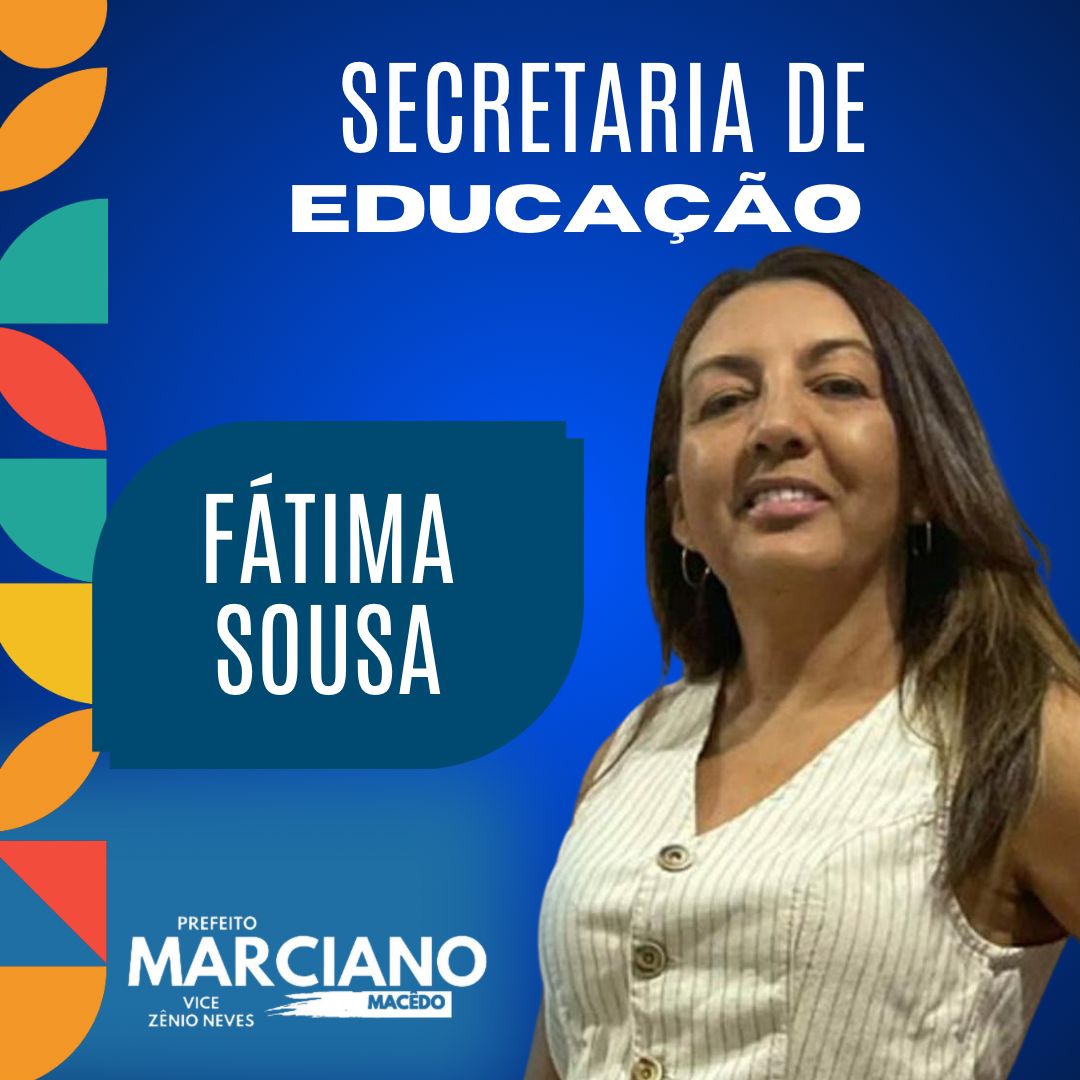 "Fátima Sousa será a próxima secretária de educação do município. "Acreditamos na sua experiência, competência e profissionalismo para estar a frente de uma secretaria tão importante. Juntos, conquistaremos excelentes resultados na educação municipal. Seja muito bem-vinda, Fatinha, ao time de secretariado!"