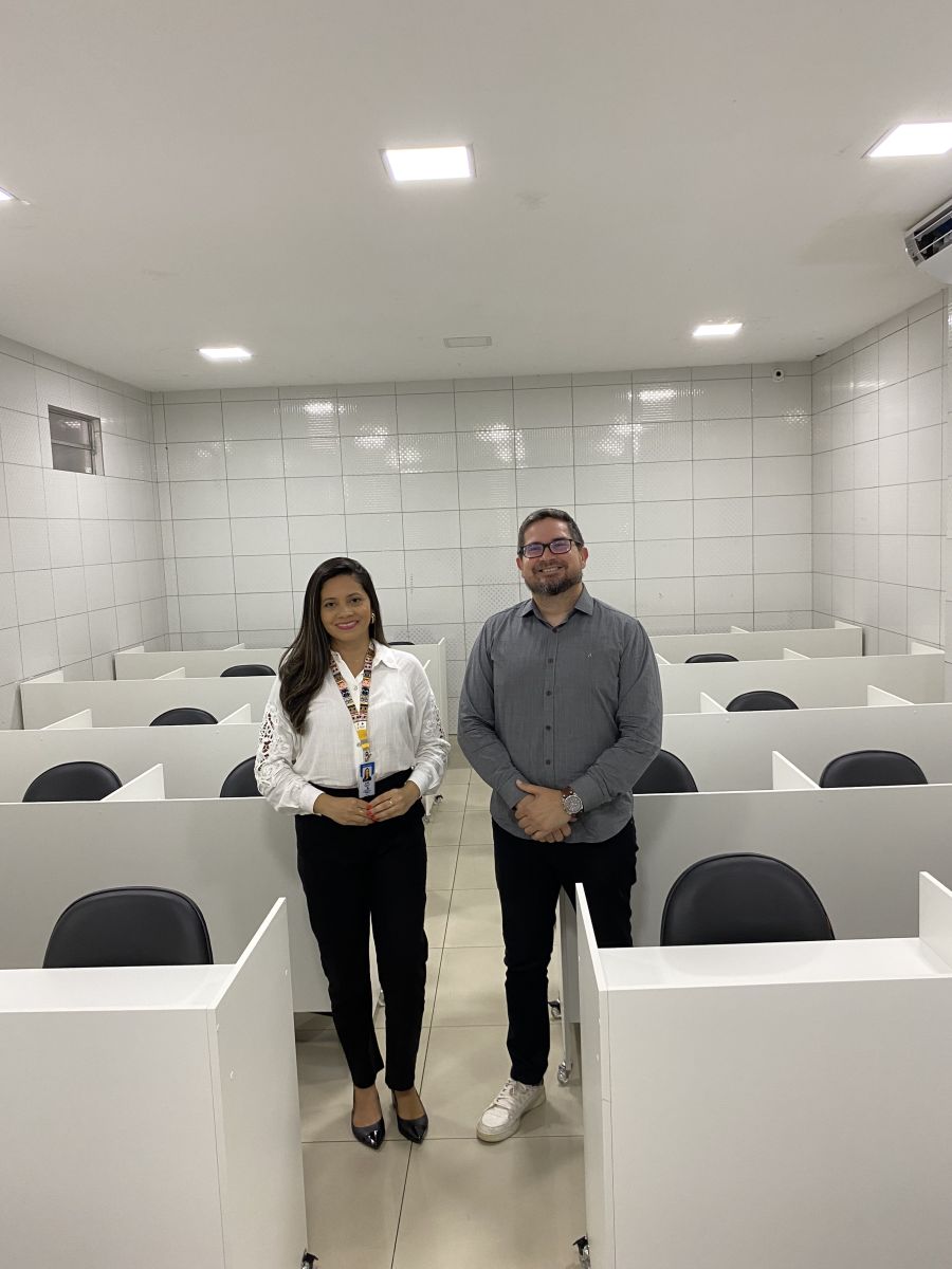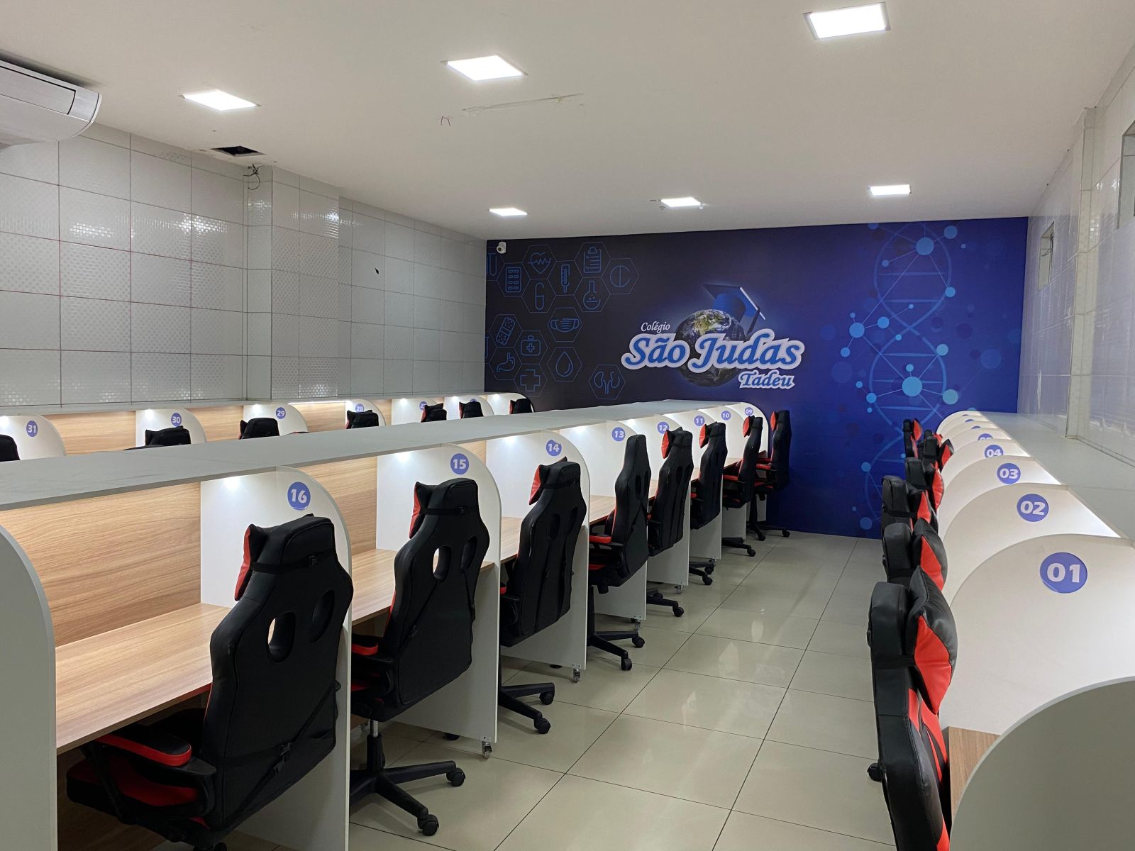 6. Sala de aula com cabines individuais permitindo mais organização do material didático e conforto..