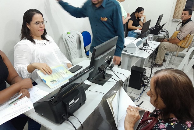 Na sala onde acontece o processo de recadastramento foram montados seis guichês para atender a demanda. Uma novidade nesse primeiro recadastramento da nova administração municipal é a utilização inédita da biometria e do reconhecimento facial, duas ferramentas modernas e que tornam o processo mais seguro.