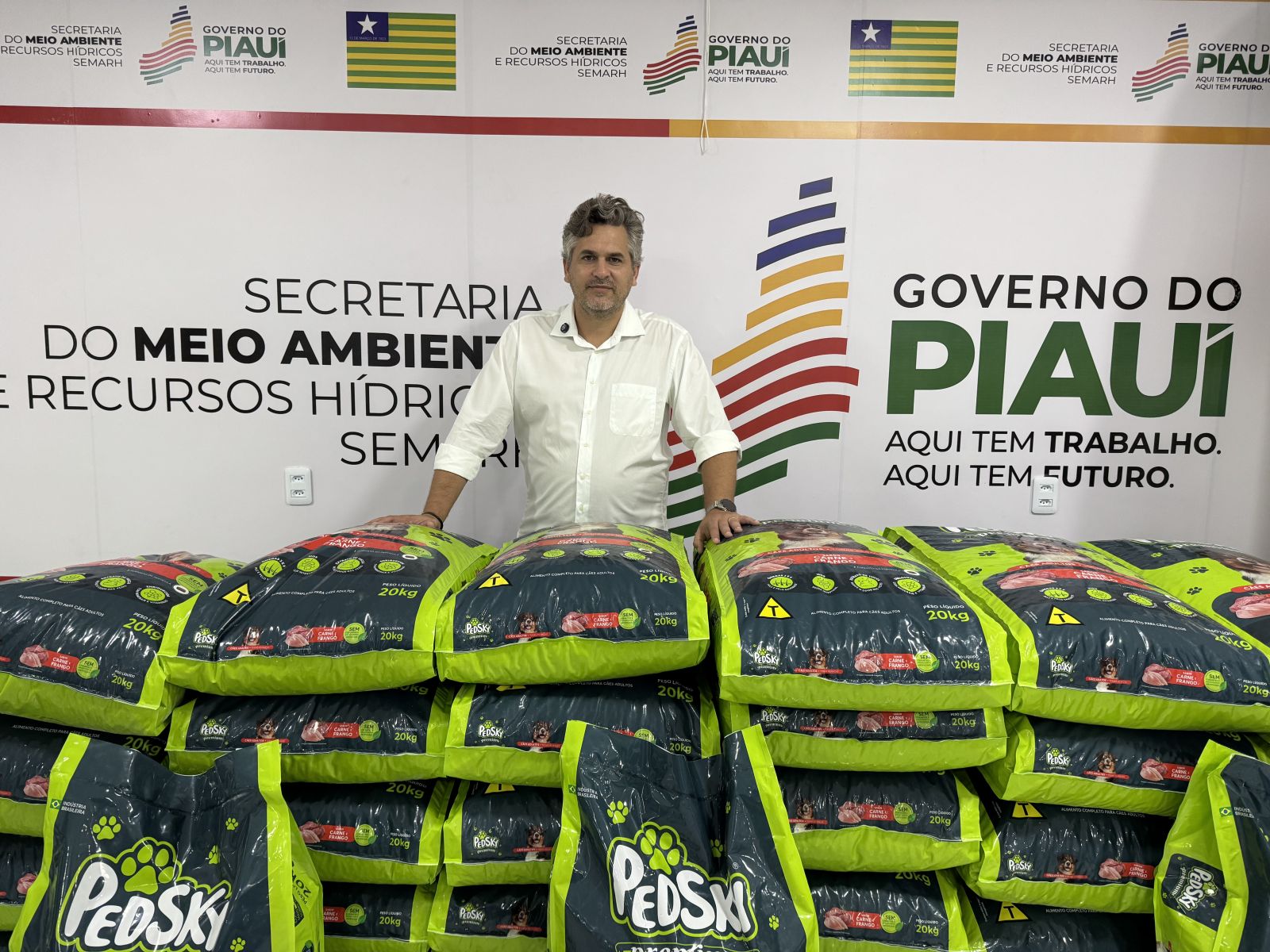 A Secretaria do Meio Ambiente e Recursos Hídricos (SEMARH) realizou uma solenidade especial de entrega de 5 toneladas de ração para cães e gatos do município de Picos.
