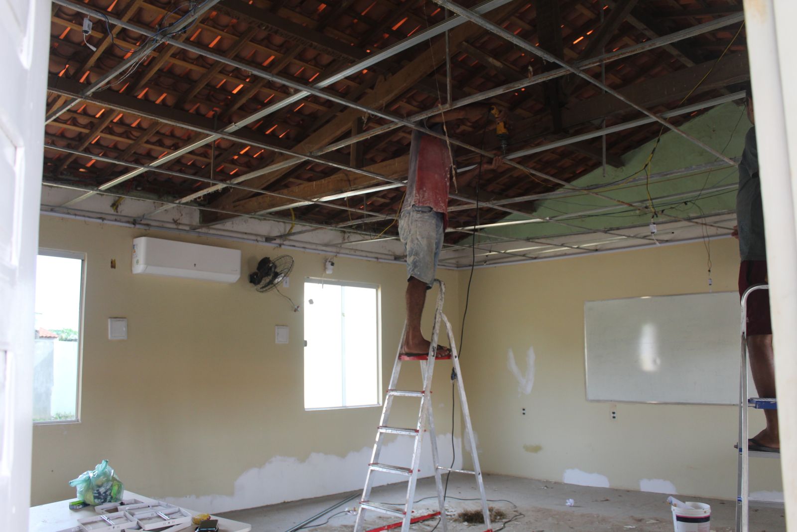 Sala de aula recebe novo forro e pintura