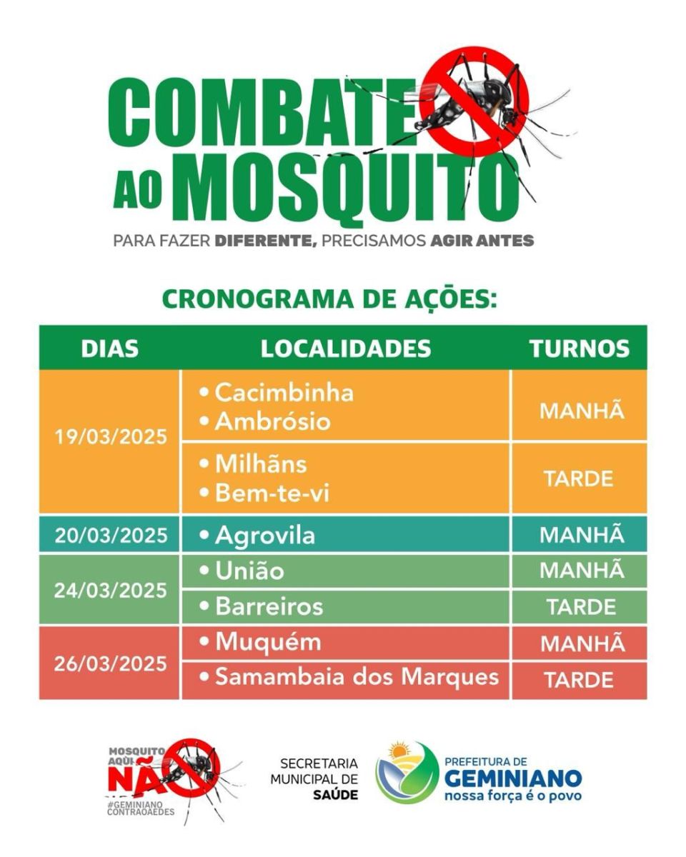 A Prefeitura de Geminiano, por meio da Secretaria Municipal de Saúde, está reforçando as ações de combate ao mosquito Aedes aegypti, transmissor da dengue, zika e chikungunya.