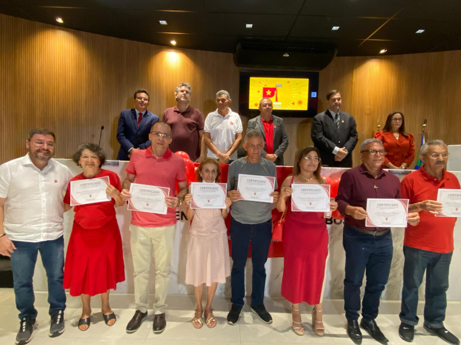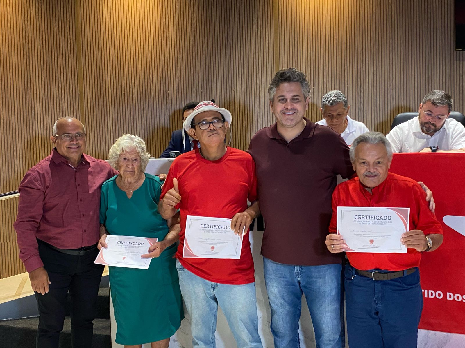 Na oportunidade, militantes históricos do partido foram homenageados com certificados simbólicos de reconhecimento pela dedicação às causas da sigla.