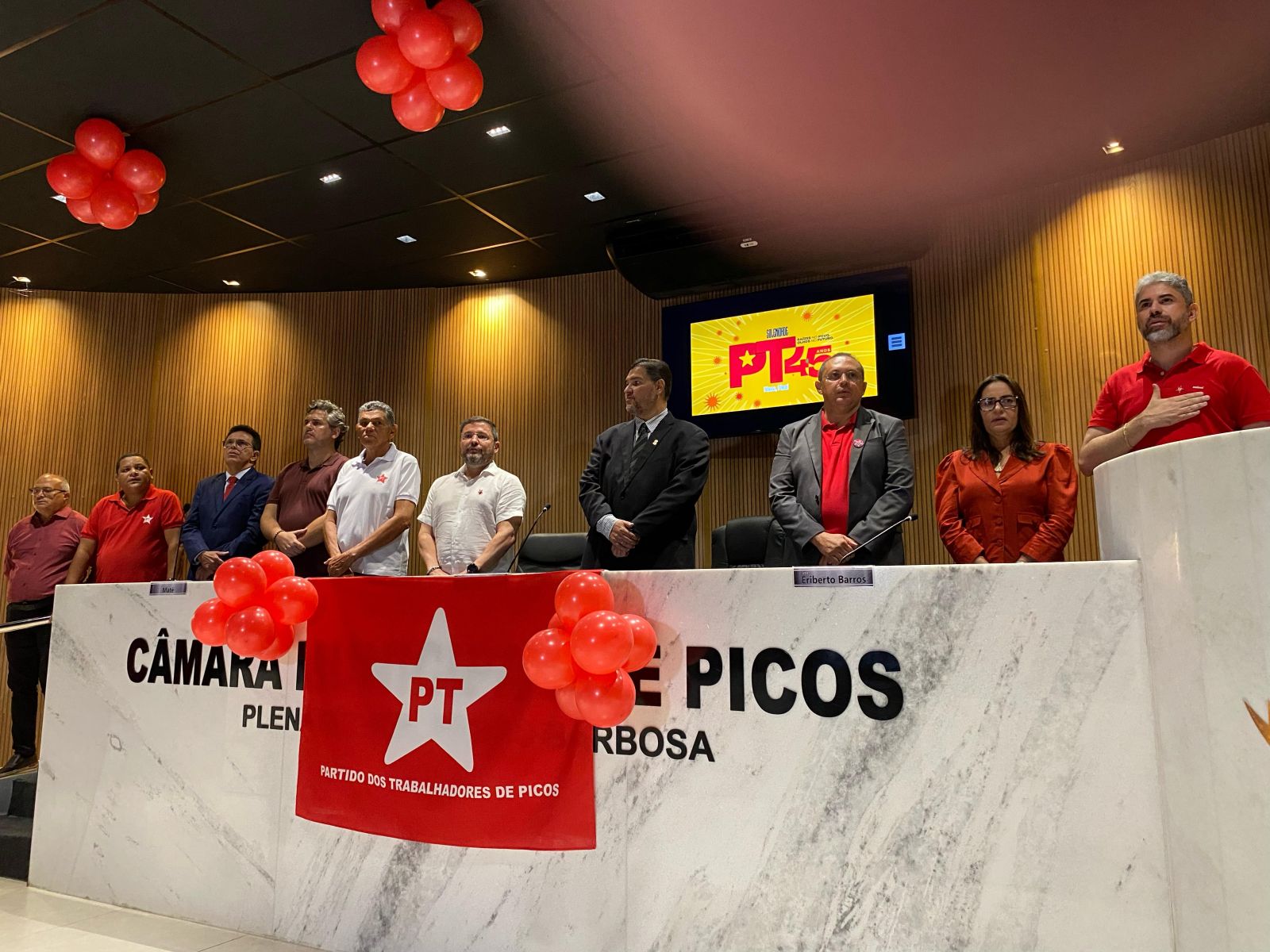 Na noite desta quinta-feira (27), a Câmara Municipal de Picos promoveu uma sessão solene para celebrar os 45 anos do Partido dos Trabalhadores (PT).