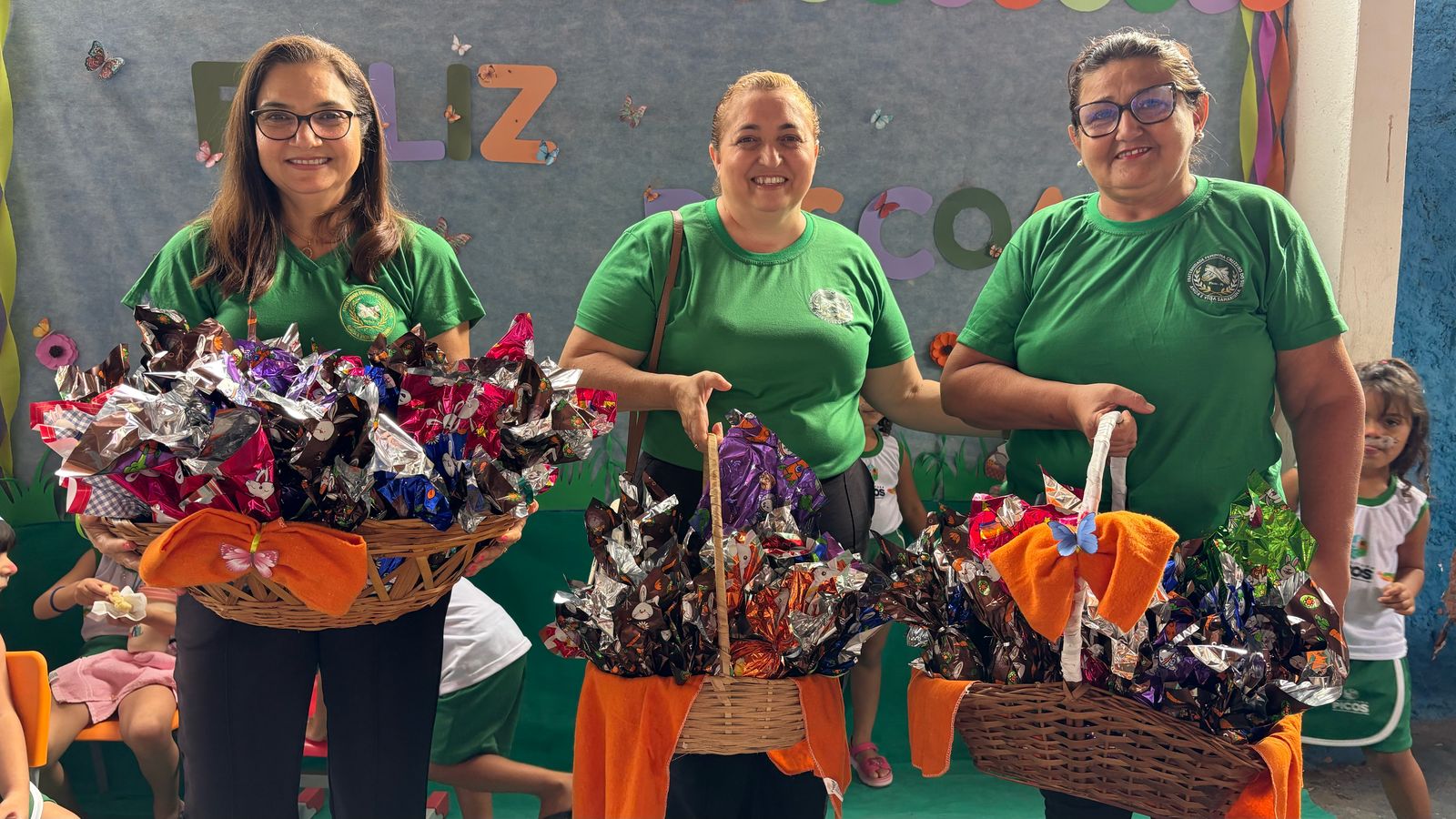 Na manhã desta terça-feira (15), uma ação social tornou a manhã dos estudantes da Escola Municipal José Lopes especial: a celebração da Páscoa com entrega de ovos de chocolate.