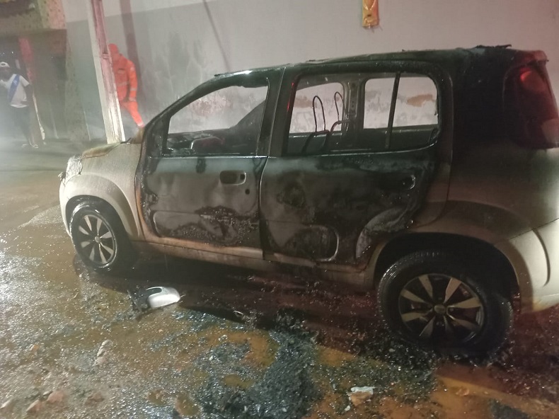 O veículo foi carbonizado durante solicitação de corrida e o Corpo de Bombeiros foi acionado para conter as chamas.