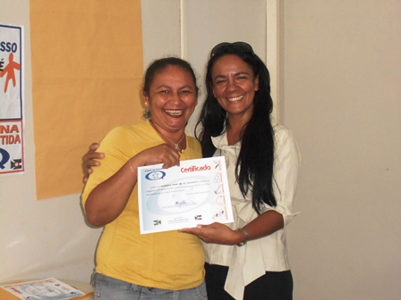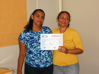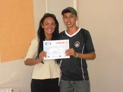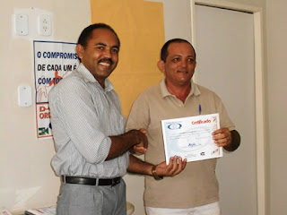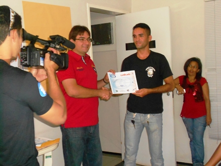 | Iata entrega certificado para João que participou do curso |