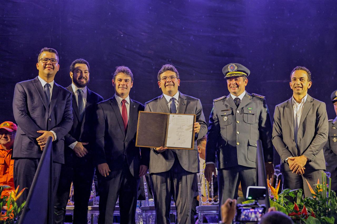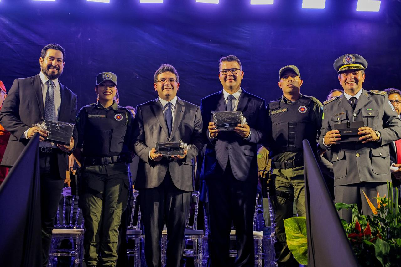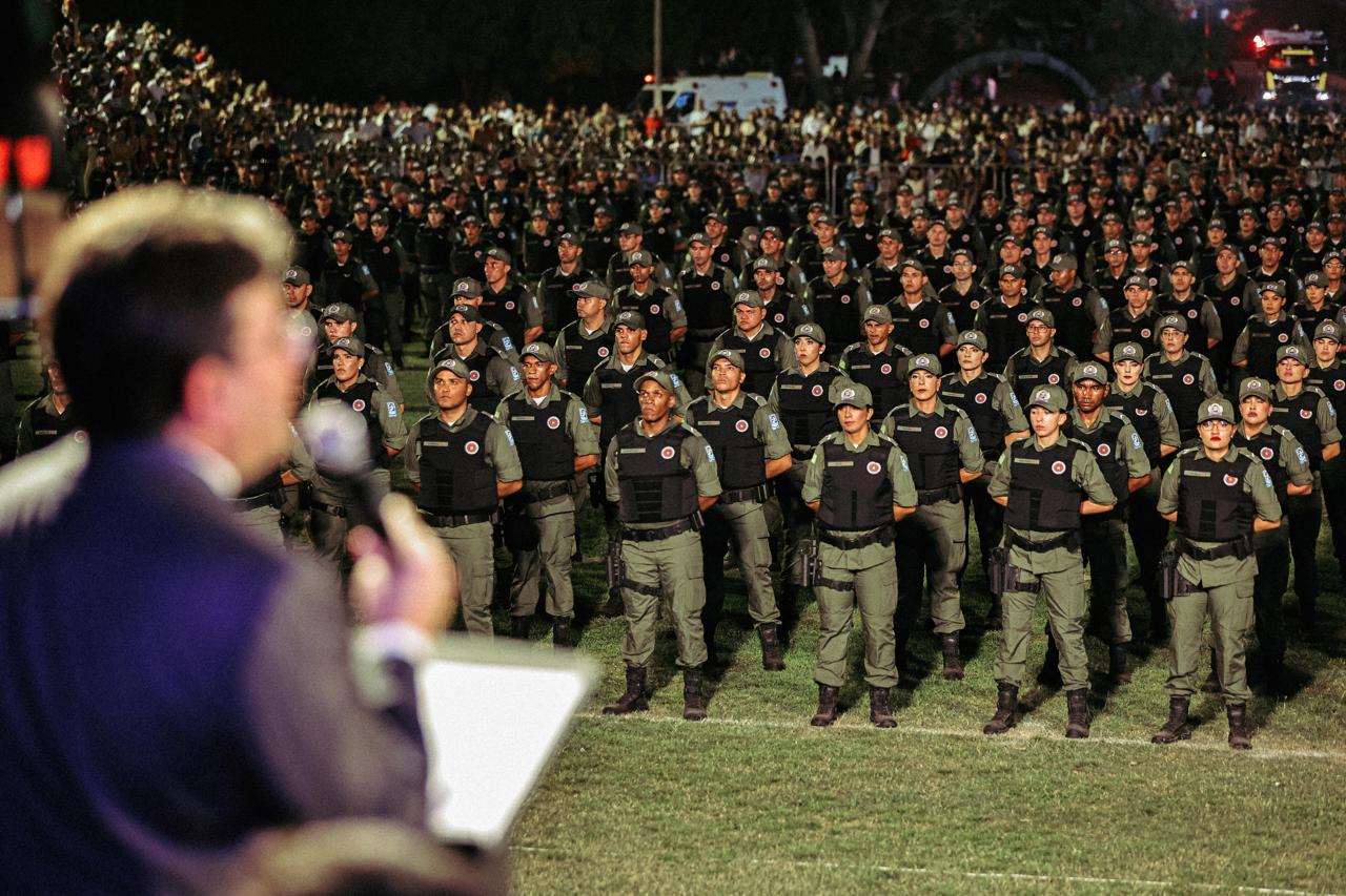O governador Rafael Fonteles destacou a importância do reforço no efetivo das forças de segurança e lembrou que, em sua gestão, já foram incorporados mais de 2 mil policiais militares, chegando a 3 mil novos profissionais quando somados à Polícia Civil, Polícia Penal e Corpo de Bombeiros.