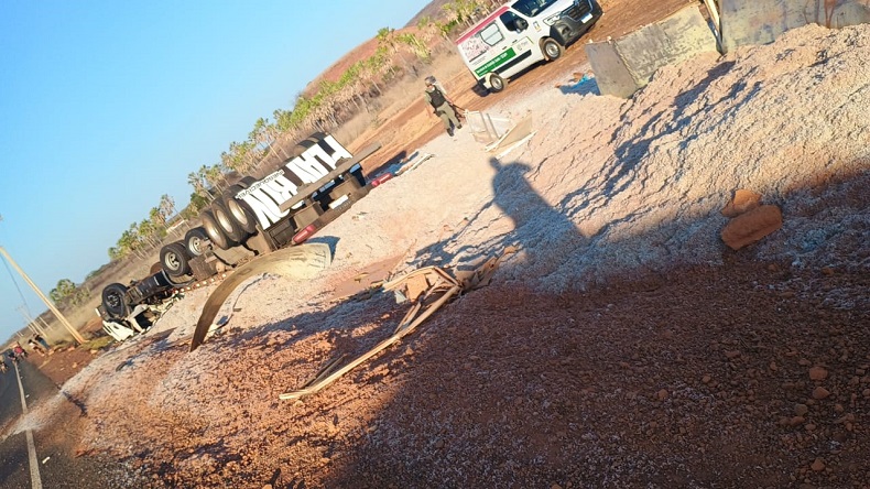 De acordo com informações da Polícia Militar, o acidente ocorreu na comunidade Lagoinha e envolveu uma carreta que tombou durante o trajeto.