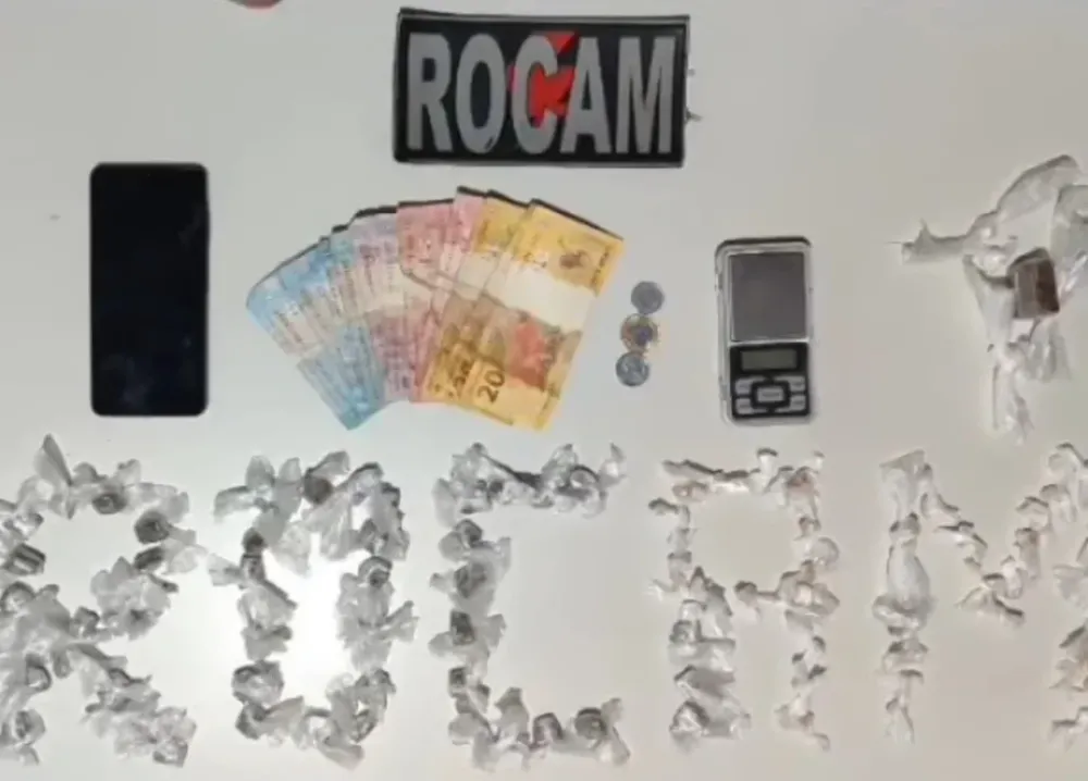 Durante uma varredura na área, os policiais localizaram mais porções de maconha, que estavam escondidas no trecho por onde o suspeito tentava fugir. No total, foram apreendidos 39 invólucros de crack prontos para a venda, 47 pequenos invólucros de maconha e um invólucro maior da mesma substância. Também foram recolhidos uma balança de precisão, um celular Samsung azul e R$ 101,60 em dinheiro trocado.