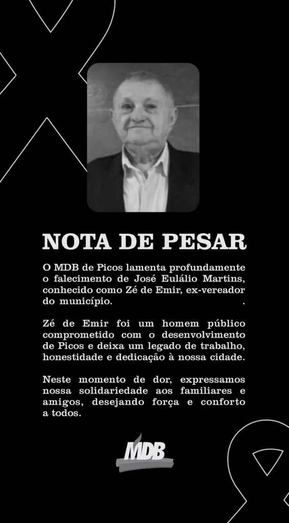 Em nota, o MDB de Picos ressaltou que Zé de Emir foi “um homem público comprometido, honesto e dedicado à cidade de Picos”, deixando um importante legado de trabalho e cidadania. O partido também manifestou solidariedade aos familiares e amigos, desejando força e conforto neste momento de dor.