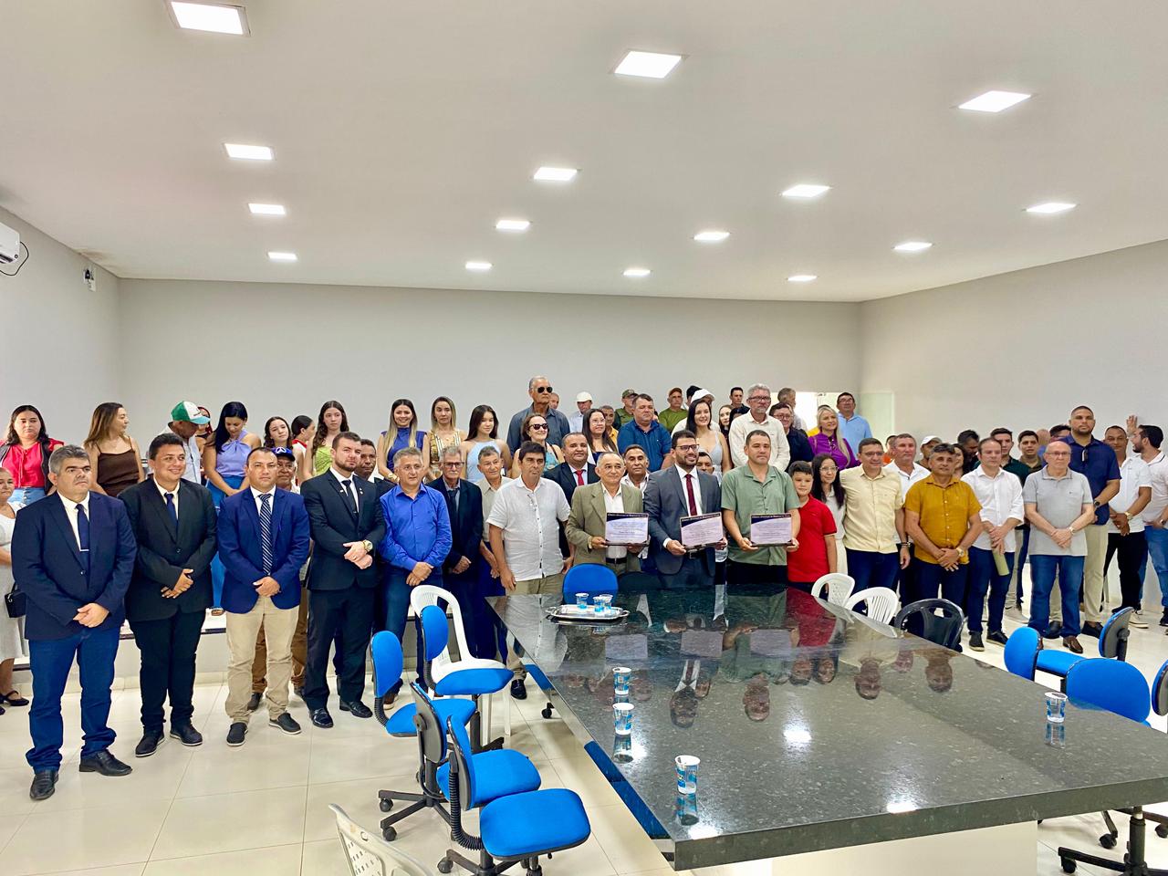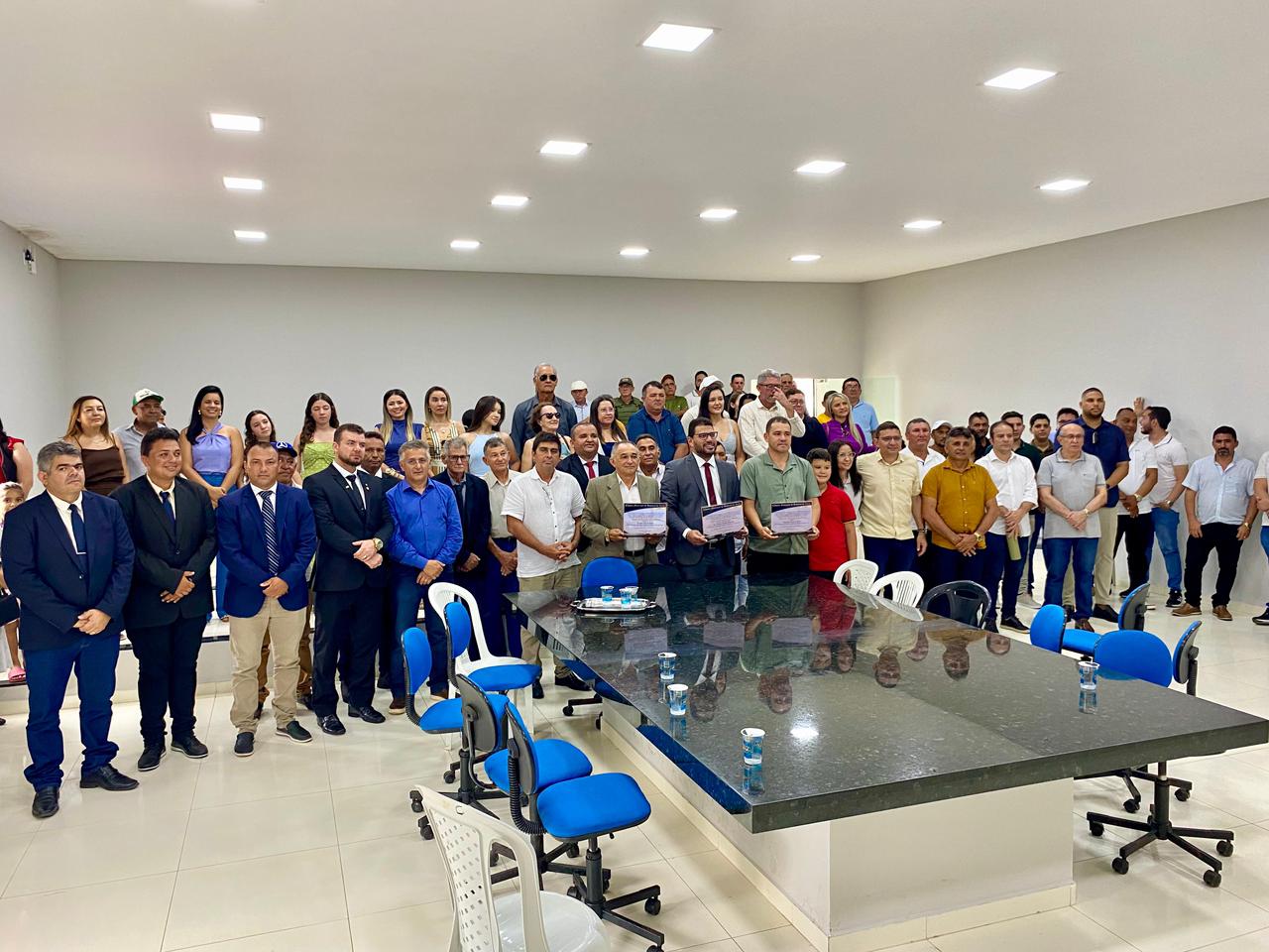 Conduzida pelo presidente da Casa, vereador Lucielton Moura, a cerimônia lotou o plenário e reuniu diversas autoridades, entre elas o prefeito Marciano Macedo, o vice-prefeito Zênio Neves, vereadores, secretários municipais, lideranças comunitárias e moradores.