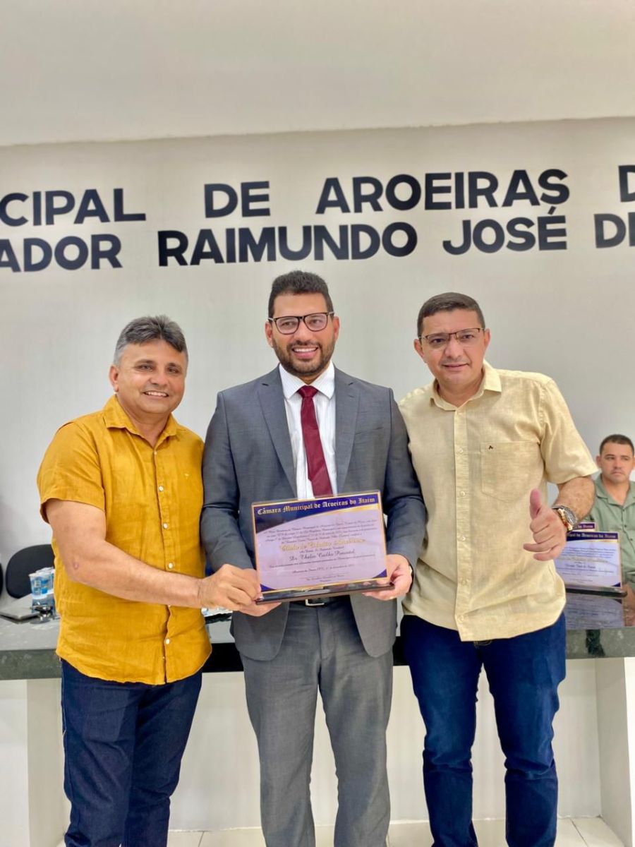 "É com grande satisfação que participo desta sessão solene, um momento especial para nossa cidade. Quero iniciar parabenizando a Câmara Municipal pela iniciativa de conceder o título de cidadania ao deputado Dr. Thales Coelho. Trata-se de um reconhecimento justo, responsável e profundamente alinhado com o sentimento da nossa população. O Legislativo mostra, mais uma vez, que sabe valorizar aqueles que verdadeiramente contribuem para o desenvolvimento do nosso município. Essa harmonia entre os poderes é fundamental para que possamos avançar, e hoje vemos aqui um exemplo claro de maturidade política, respeito institucional e compromisso com o bem comum. Dr. Thales, este título não é apenas uma homenagem, é o reflexo de uma caminhada construída com diálogo, presença e sensibilidade. O senhor tem sido um aliado fundamental, sempre atento às necessidades de Aroeiras do Itaim. É um interlocutor que leva, com firmeza e responsabilidade, a voz e as demandas do nosso povo para a Assembleia Legislativa. E isso tem feito diferença na busca de ações, parcerias e investimentos que ajudam a transformar a vida da nossa gente. Aroeiras é um município que cresce, que se fortalece e que luta diariamente para avançar. E esse avanço exige união, exige parcerias sólidas, exige pessoas comprometidas com a verdade e com o trabalho, valores que encontramos na sua atuação, Deputado. Quero ressaltar que nossa gestão acredita na força do diálogo, na construção conjunta e no respeito à população. É dessa forma que temos procurado conduzir cada passo, e encontrar no senhor um parceiro disposto a caminhar conosco fortalece esse propósito e amplia nossa capacidade de realizar mais. Este momento, portanto, é também uma afirmação de confiança. A confiança do Legislativo, da gestão municipal e, sobretudo, do povo de Aroeiras do Itaim no seu compromisso com nossa terra. Que este título renove ainda mais essa parceria. Que possamos seguir unidos, trabalhando por dias melhores, por conquistas cada vez maiores e por uma cidade que avança sem deixar ninguém para trás. Em nome da gestão municipal e de toda a população, deixo aqui minha gratidão e meus parabéns ao novo cidadão Aroeirense, deputado Dr. Thales. Muito obrigado!", disse o Prefeito.