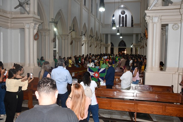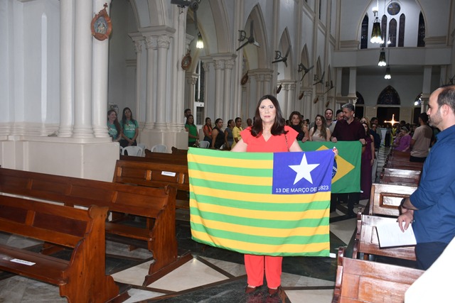 A tradicional procissão de entrada teve a participação dos integrantes da administração “Reconstruindo Nosso Futuro”, que adentraram a Catedral com as bandeiras de Picos, do Piauí e do Brasil.