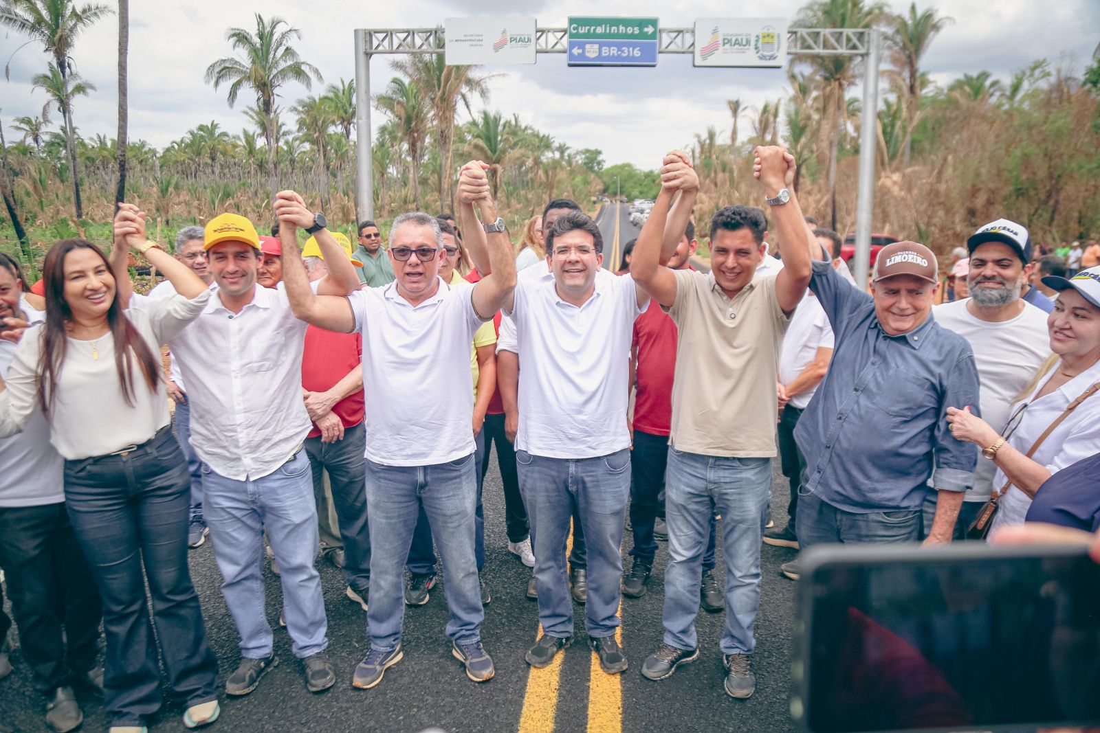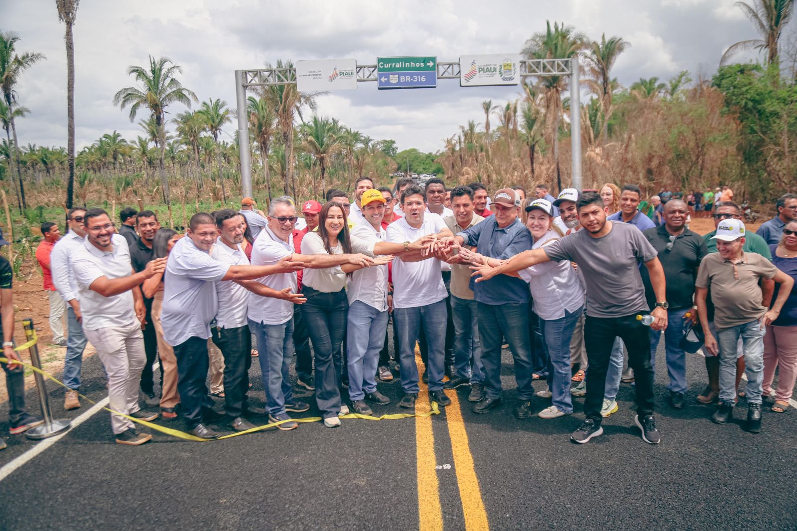 O governador Rafael Fonteles também participou da solenidade de inauguração da pavimentação asfáltica da rodovia PI-353, no trecho que liga Nazária, na localidade Campestre, ao município de Curralinhos, na localidade Lajinha.