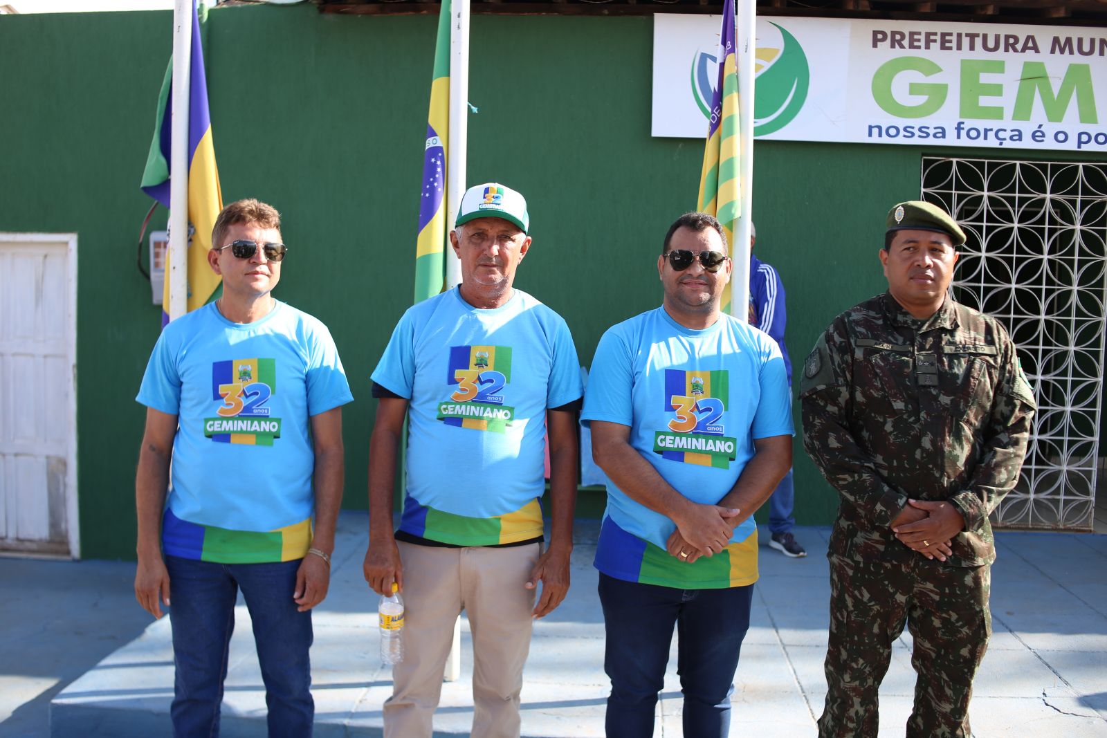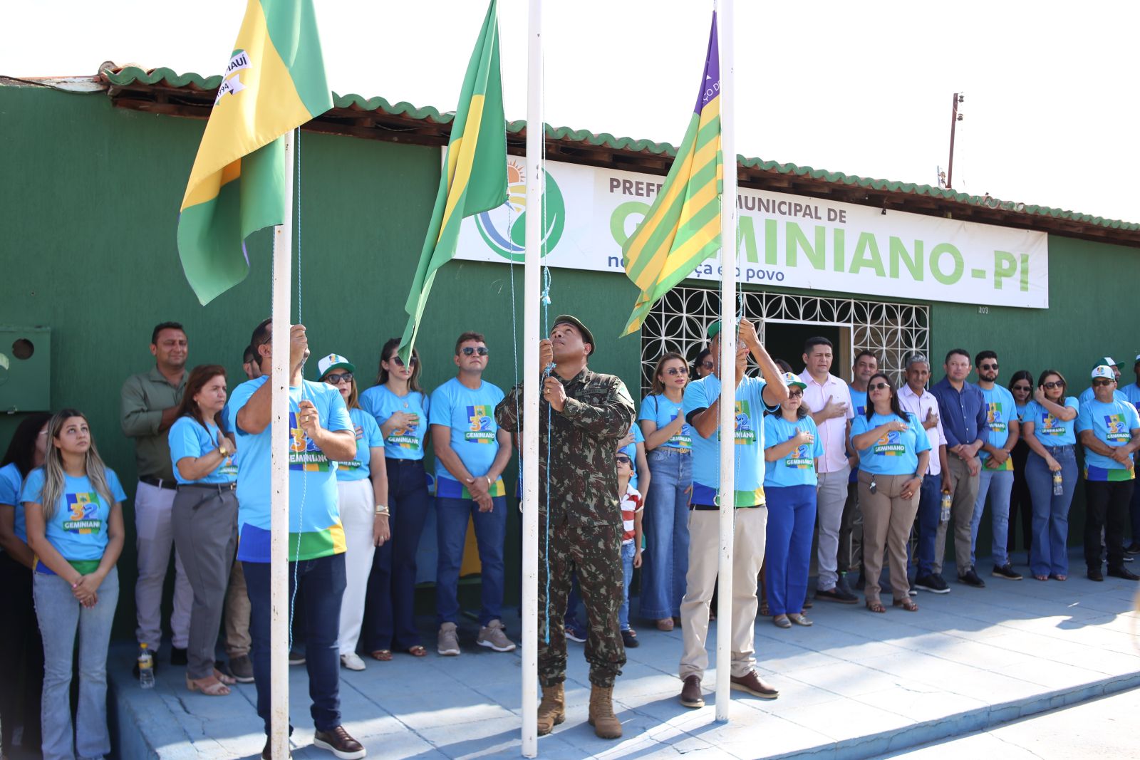 O prefeito Jaillson Campos conduziu o hasteamento da bandeira do município de Geminiano. Já a bandeira do Estado do Piauí foi hasteada pelo presidente da Câmara Municipal, vereador Milton Vieira, enquanto a bandeira do Brasil ficou sob a responsabilidade do tenente-coronel Aécio da Silva.