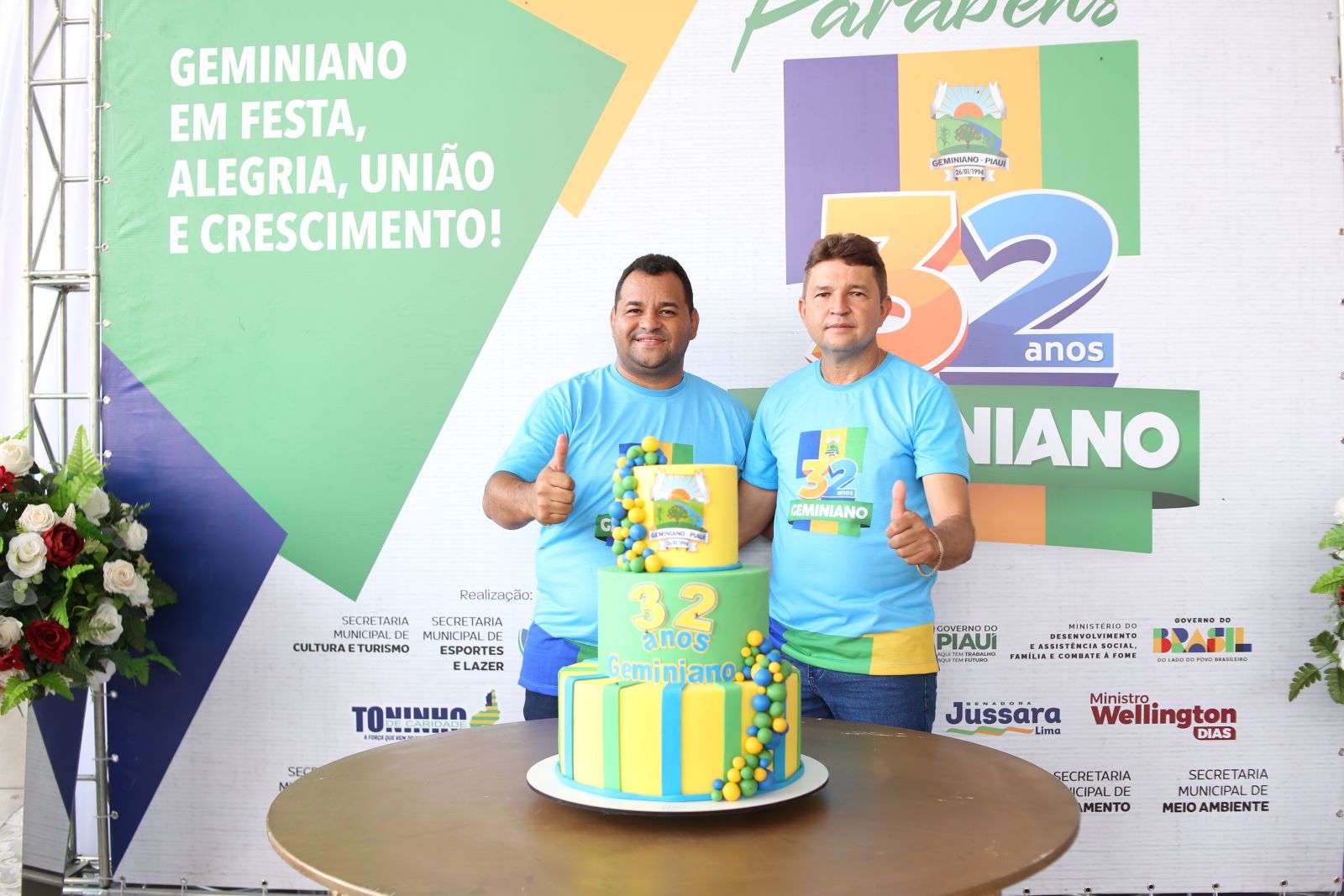 “Hoje, 26 de janeiro, comemoramos oficialmente os 32 anos de Geminiano, uma cidade formada por um povo acolhedor, trabalhador, honesto e festivo. Tenho muito orgulho de representar esse povo como prefeito. É um momento de grande alegria. Geminiano está em festa, em união e em crescimento. Parabéns, Geminiano, que Deus continue nos conduzindo para fazer o melhor por essa cidade, que ela tem muito a avançar”, afirmou.
